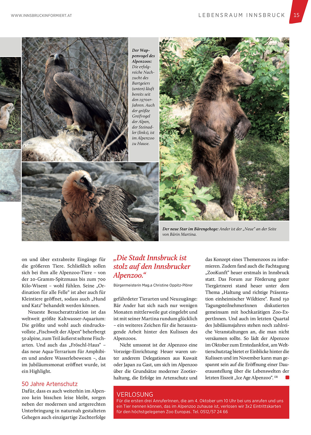 für den höchstgelegenen Zoo Europas. Tel. 0512/57 24 66