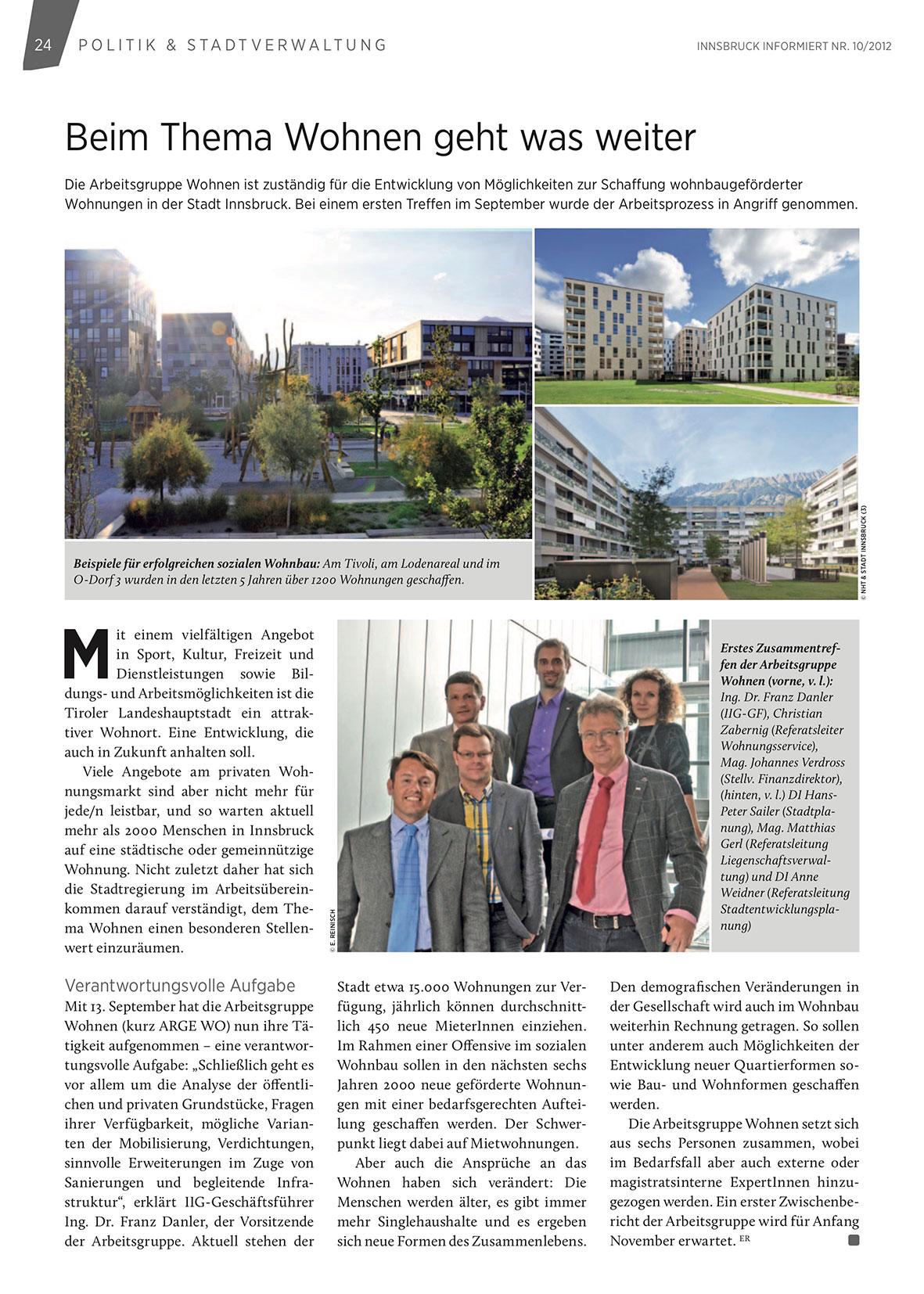 Wohnungen in der Stadt Innsbruck. Bei einem ersten Treffen im September wurde der Arbeitsprozess in Angriff genommen.