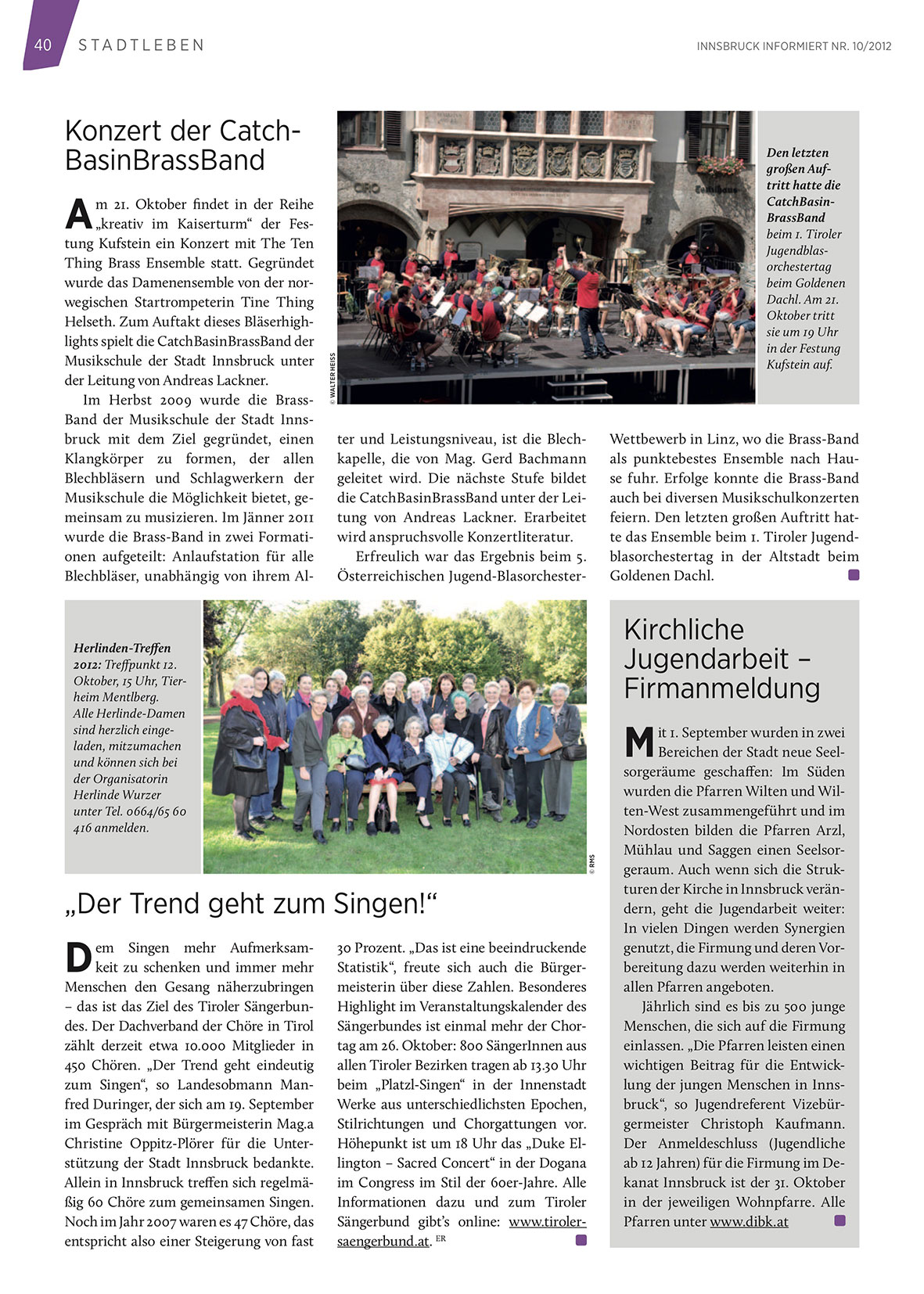 Im Herbst 2009 wurde die BrassBand der Musikschule der Stadt Innsbruck mit dem Ziel gegründet, einen