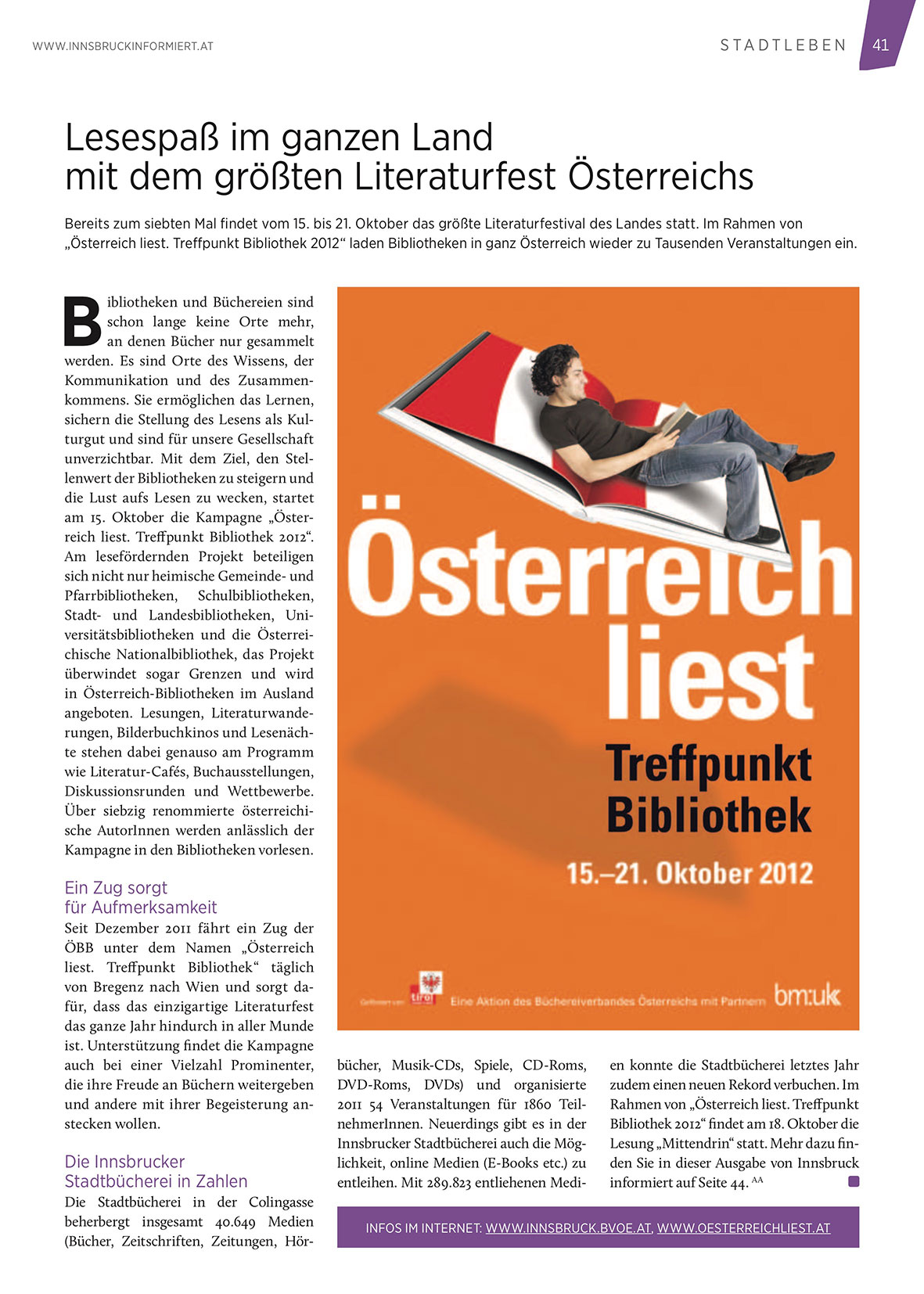 Infos im Internet: www.innsbruck.bvoe.at, www.oesterreichliest.at