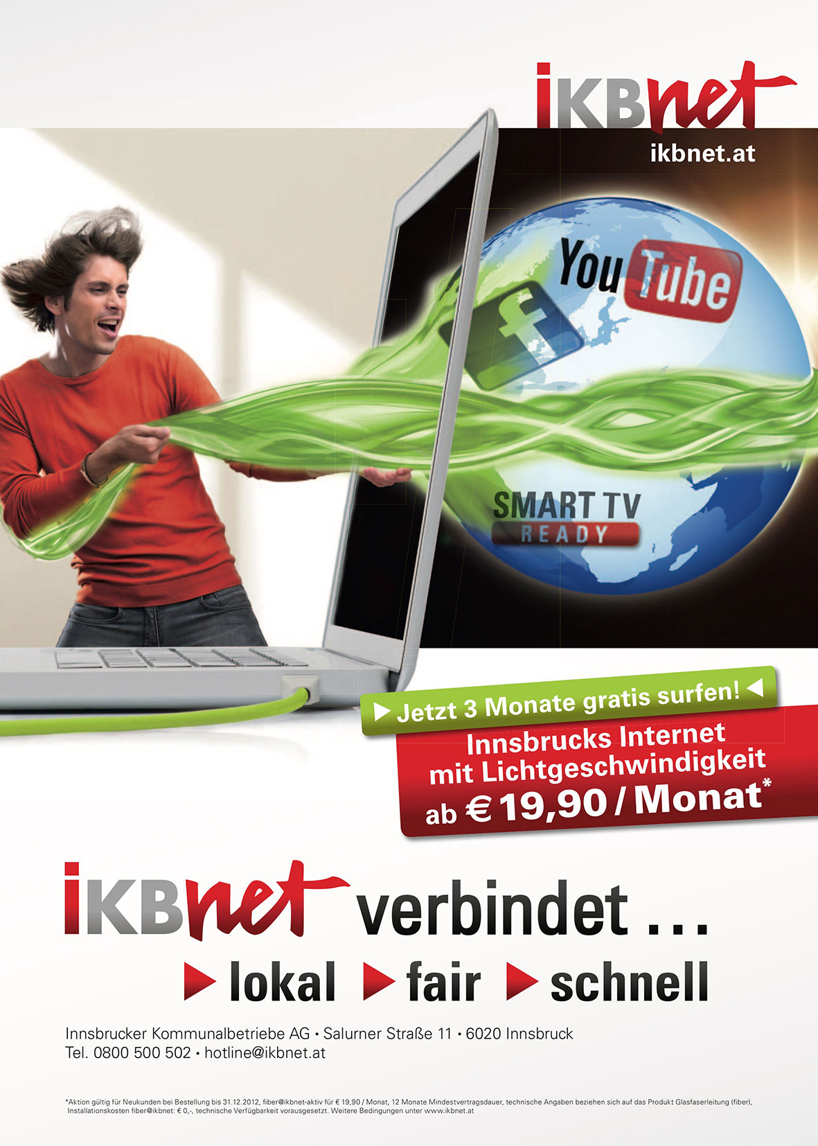 Installationskosten fiber@ikbnet: € 0,-, technische Verfügbarkeit vorausgesetzt. Weitere Bedingungen unter www.ikbnet.at