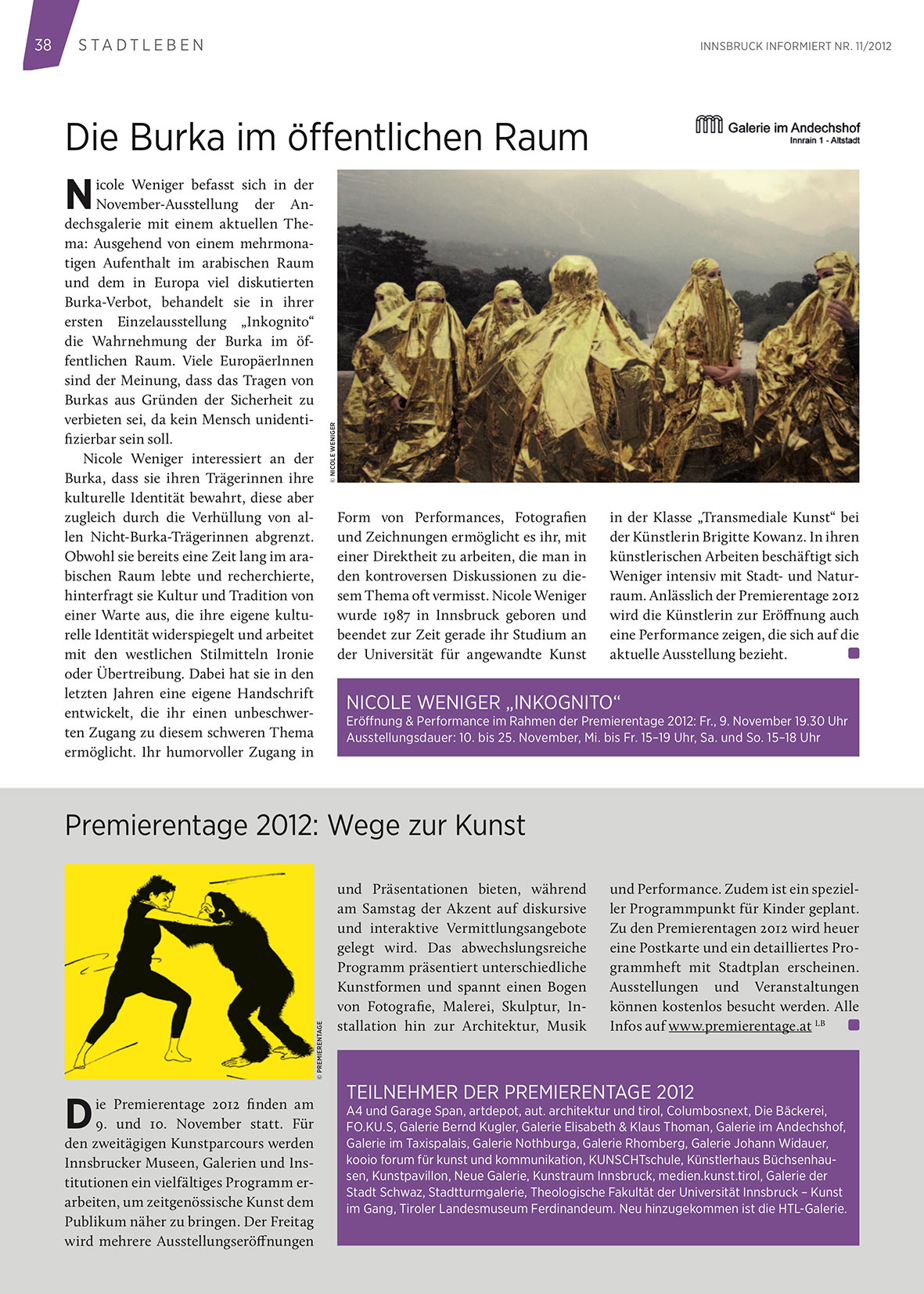 eröffnung & Performance im rahmen der Premierentage 2012: Fr., 9. november 19.30 uhr