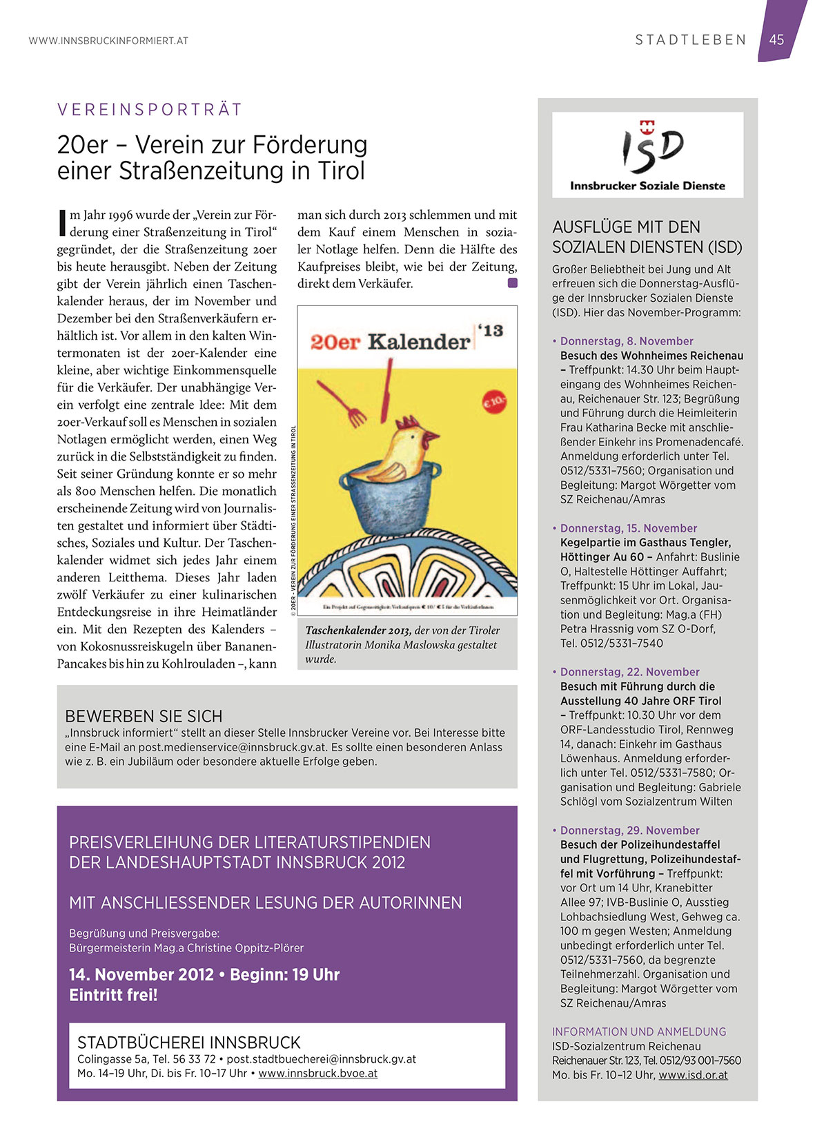 m Jahr 1996 wurde der „Verein zur Förderung einer Straßenzeitung in Tirol“
