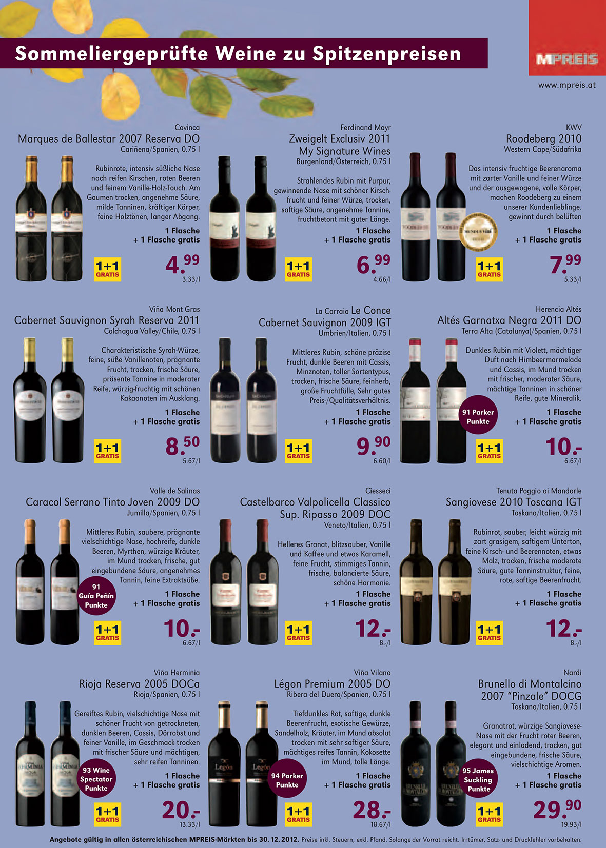 Angebote gültig in allen österreichischen MPREIS-Märkten bis 30. 12. 2012. Preise inkl. Steuern, exkl. Pfand. Solange der Vorrat reicht. Irrtümer, Satz- und Druckfehler vorbehalten.