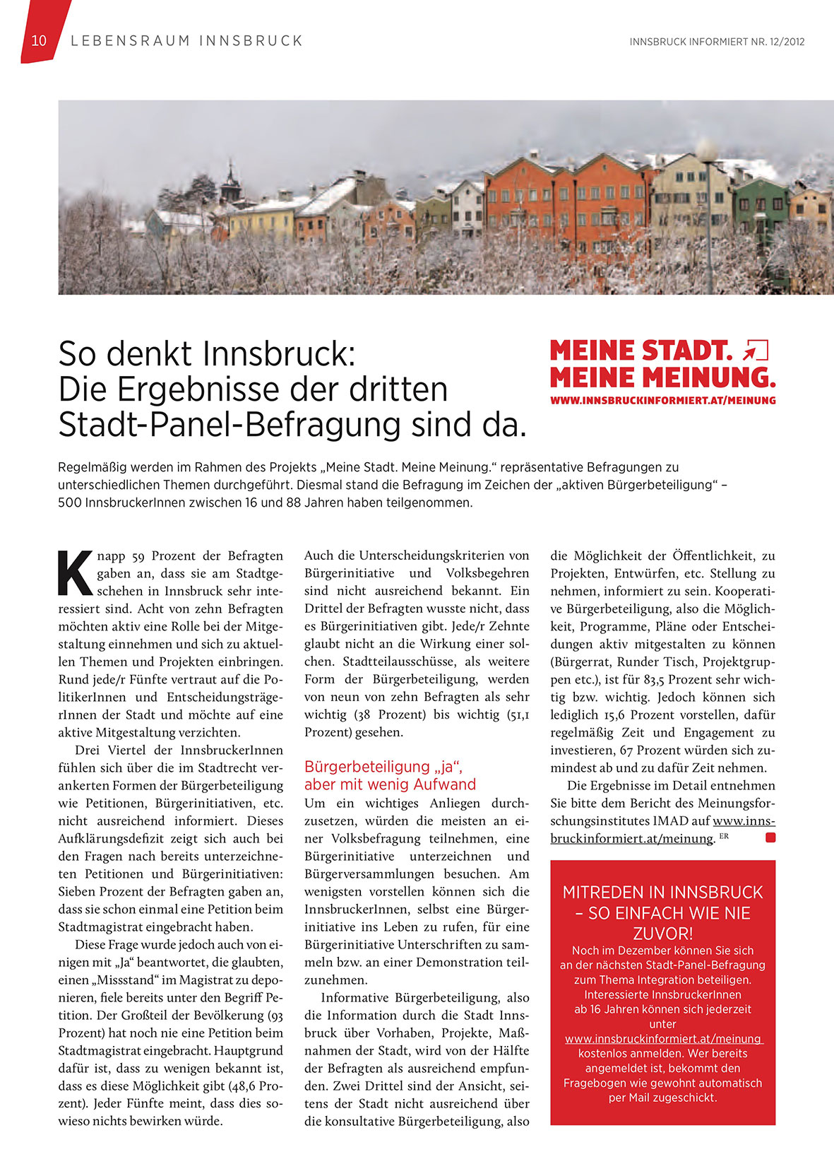 Sie bitte dem Bericht des Meinungsforschungsinstitutes IMAD auf www.innsbruckinformiert.at/meinung. ER