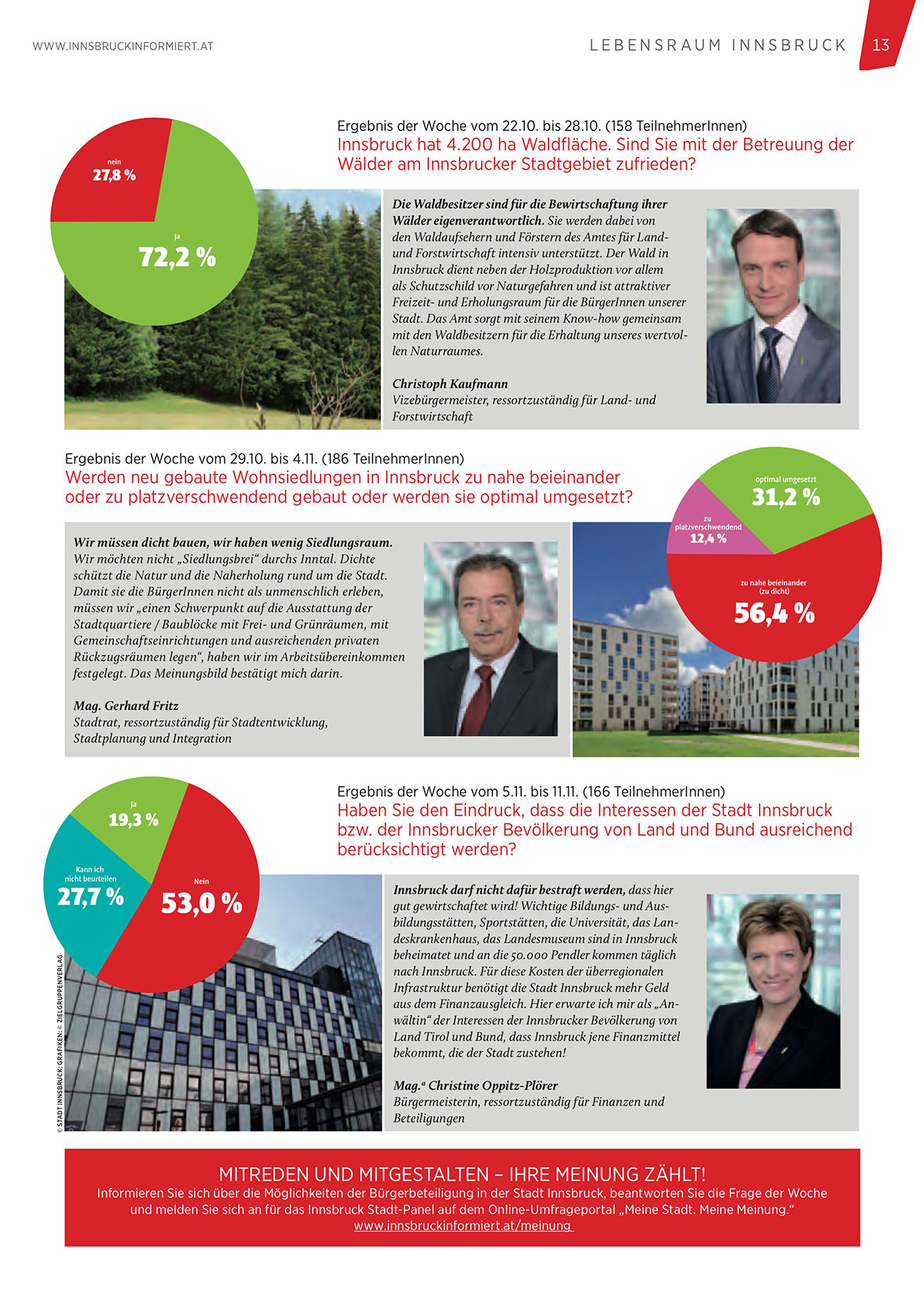 und melden Sie sich an für das Innsbruck Stadt-Panel auf dem Online-Umfrageportal „Meine Stadt. Meine Meinung.“