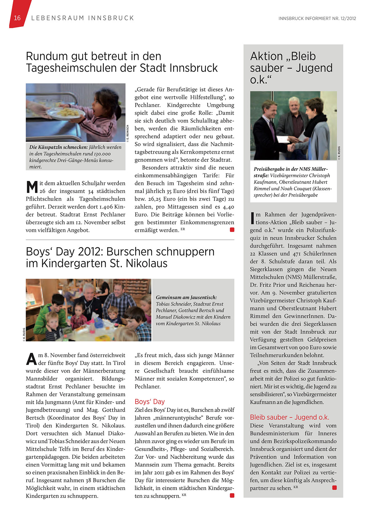 Day für interessierte Burschen die Möglichkeit, in einem städtischen Kindergarten zu schnuppern. KR