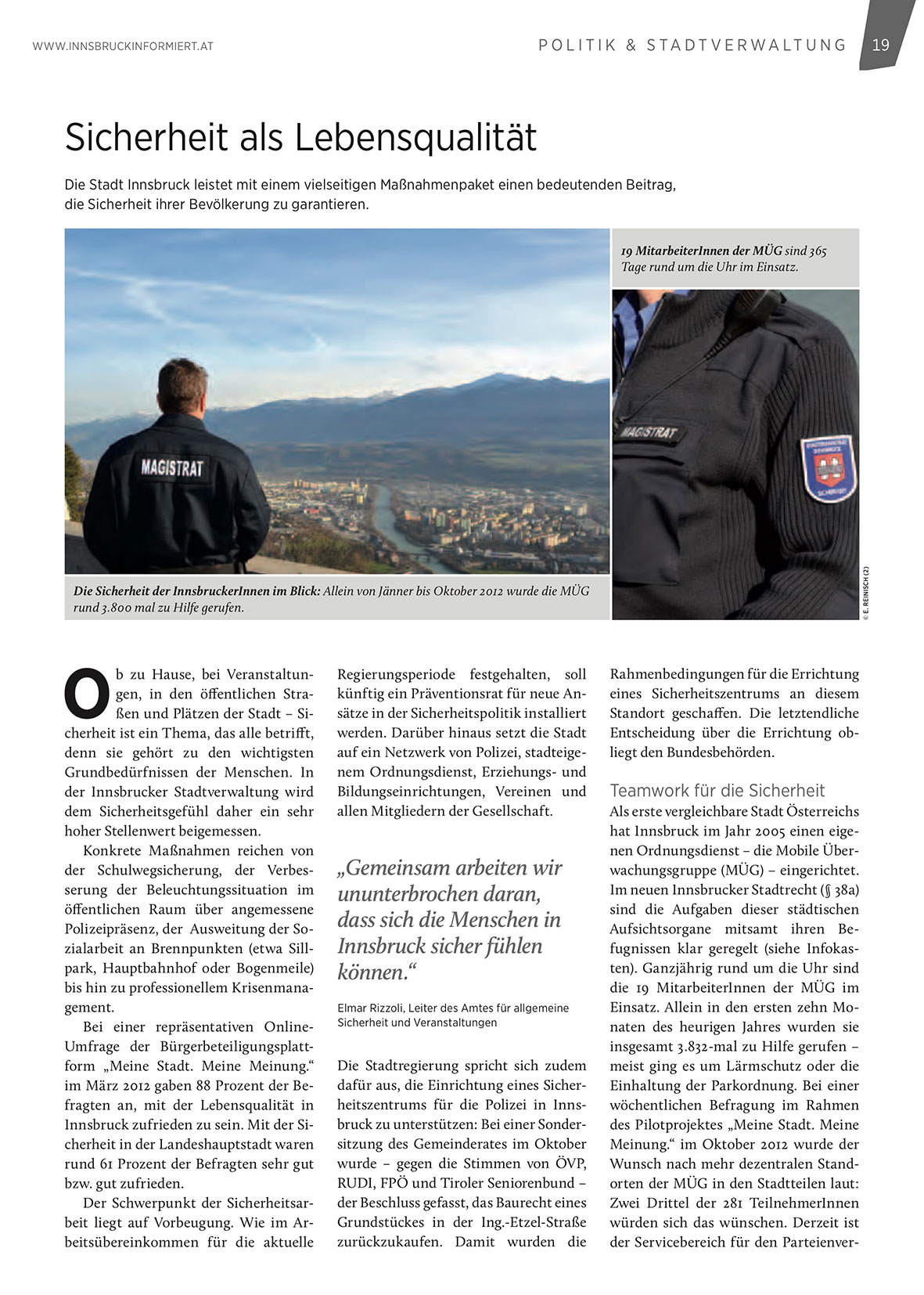 Die Sicherheit der InnsbruckerInnen im Blick: Allein von Jänner bis Oktober 2012 wurde die MÜG