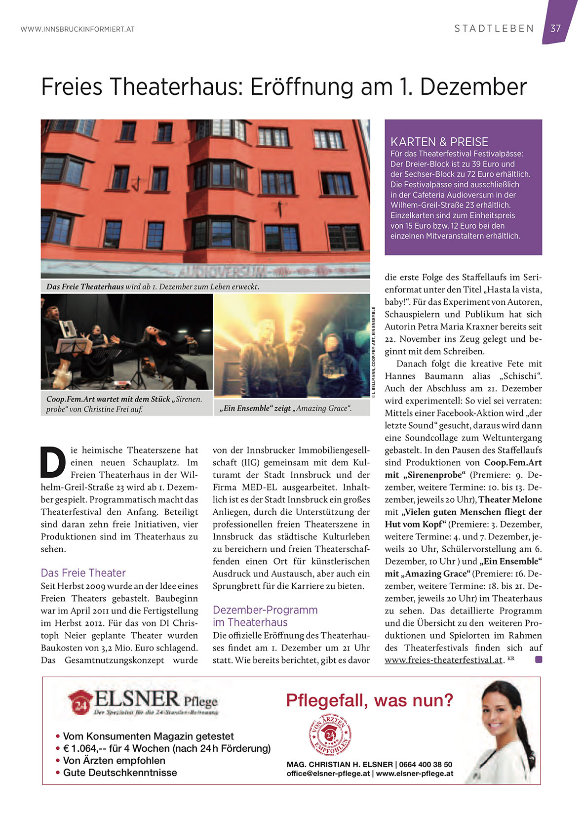 Freien Theaterhaus in der Wilhelm-Greil-Straße 23 wird ab 1. Dezember gespielt. Programmatisch macht das