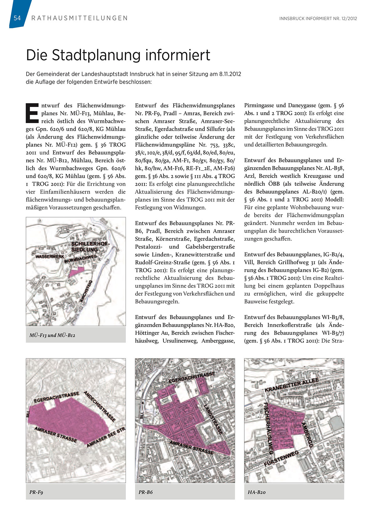 Der Gemeinderat der Landeshauptstadt Innsbruck hat in seiner Sitzung am 8.11.2012