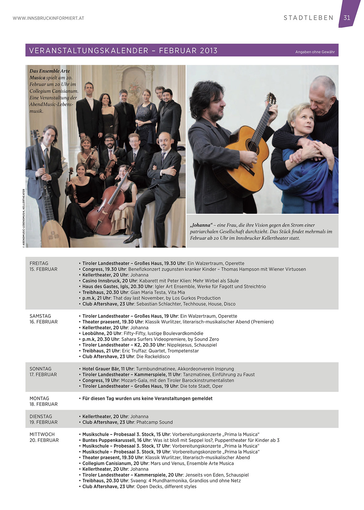Februar ab 20 Uhr im Innsbrucker Kellertheater statt.