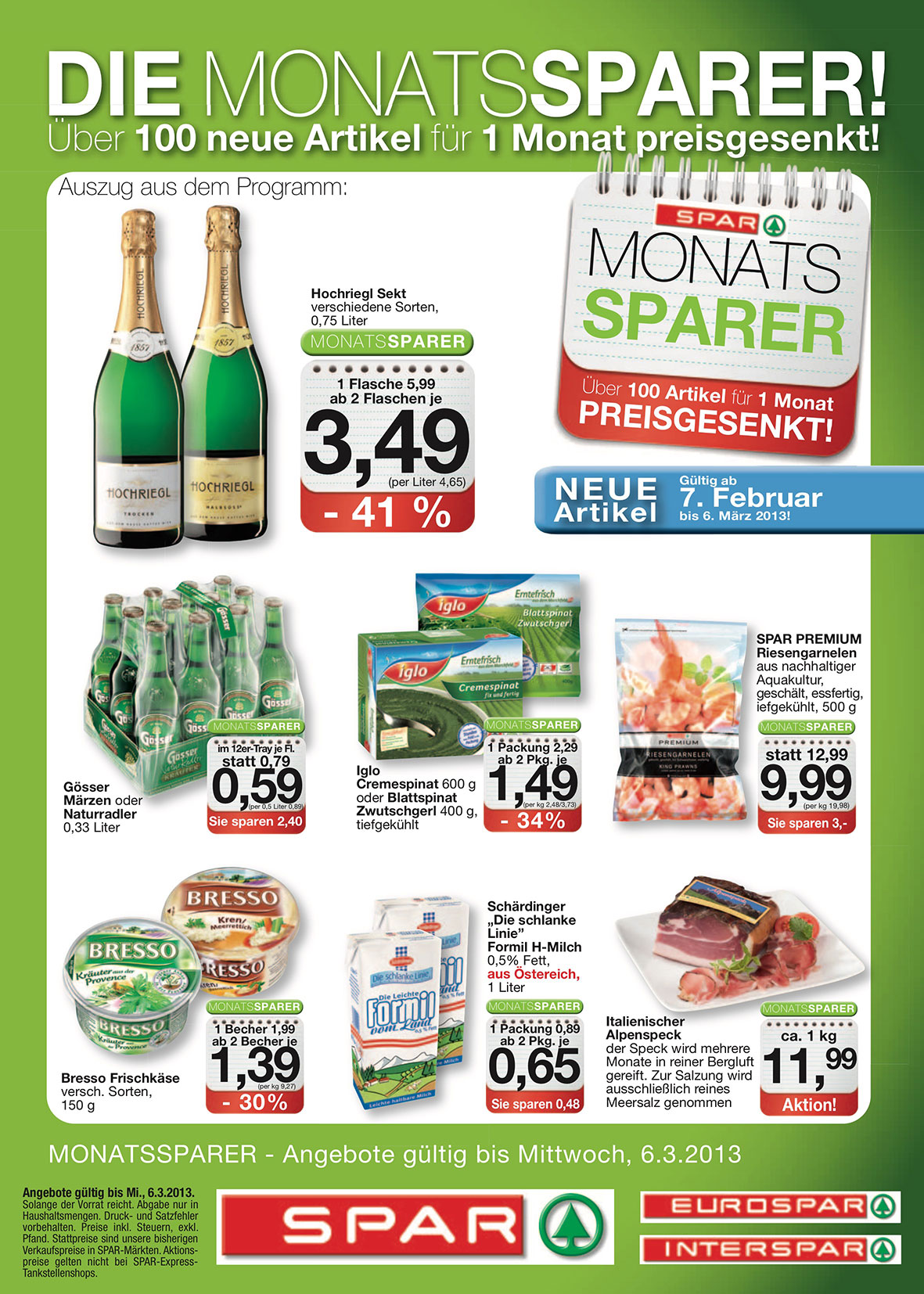 MONATSSPARER - Angebote gültig bis Mittwoch, 6.3.2013