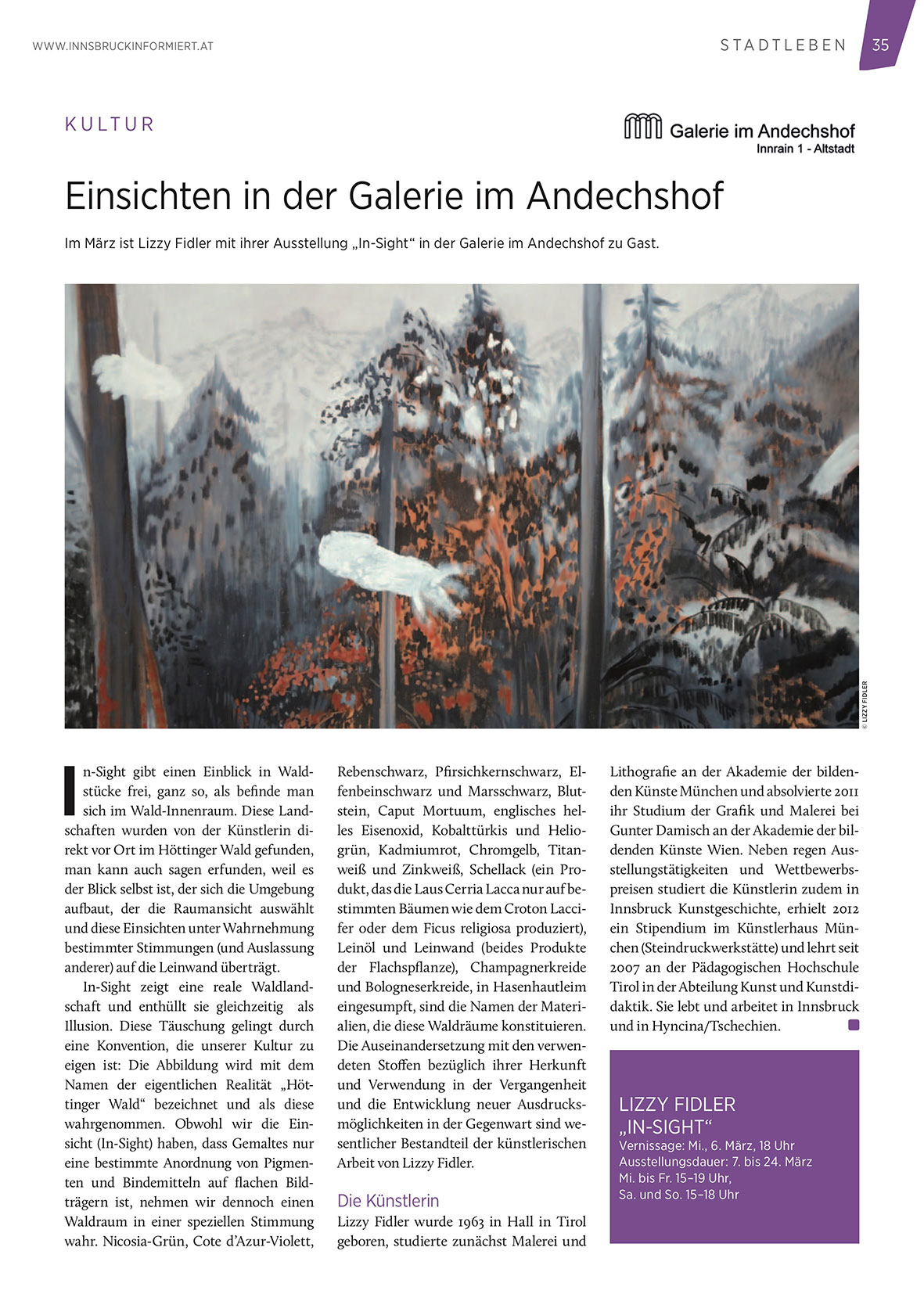 Im März ist Lizzy Fidler mit ihrer Ausstellung „In-Sight“ in der Galerie im Andechshof zu Gast.