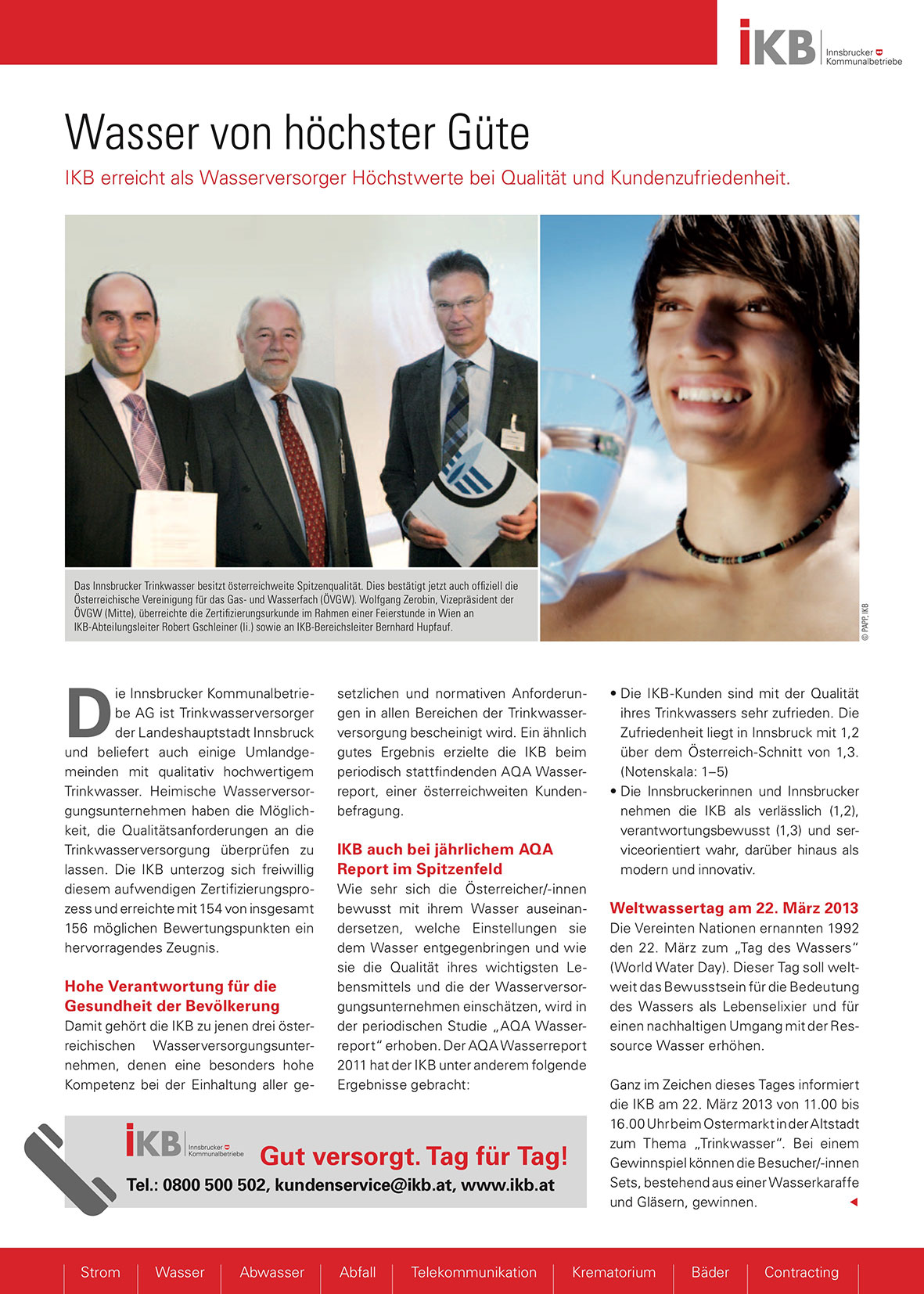 Damit gehört die IKB zu jenen drei österreichischen Wasserversorgungsunternehmen, denen eine besonders hohe