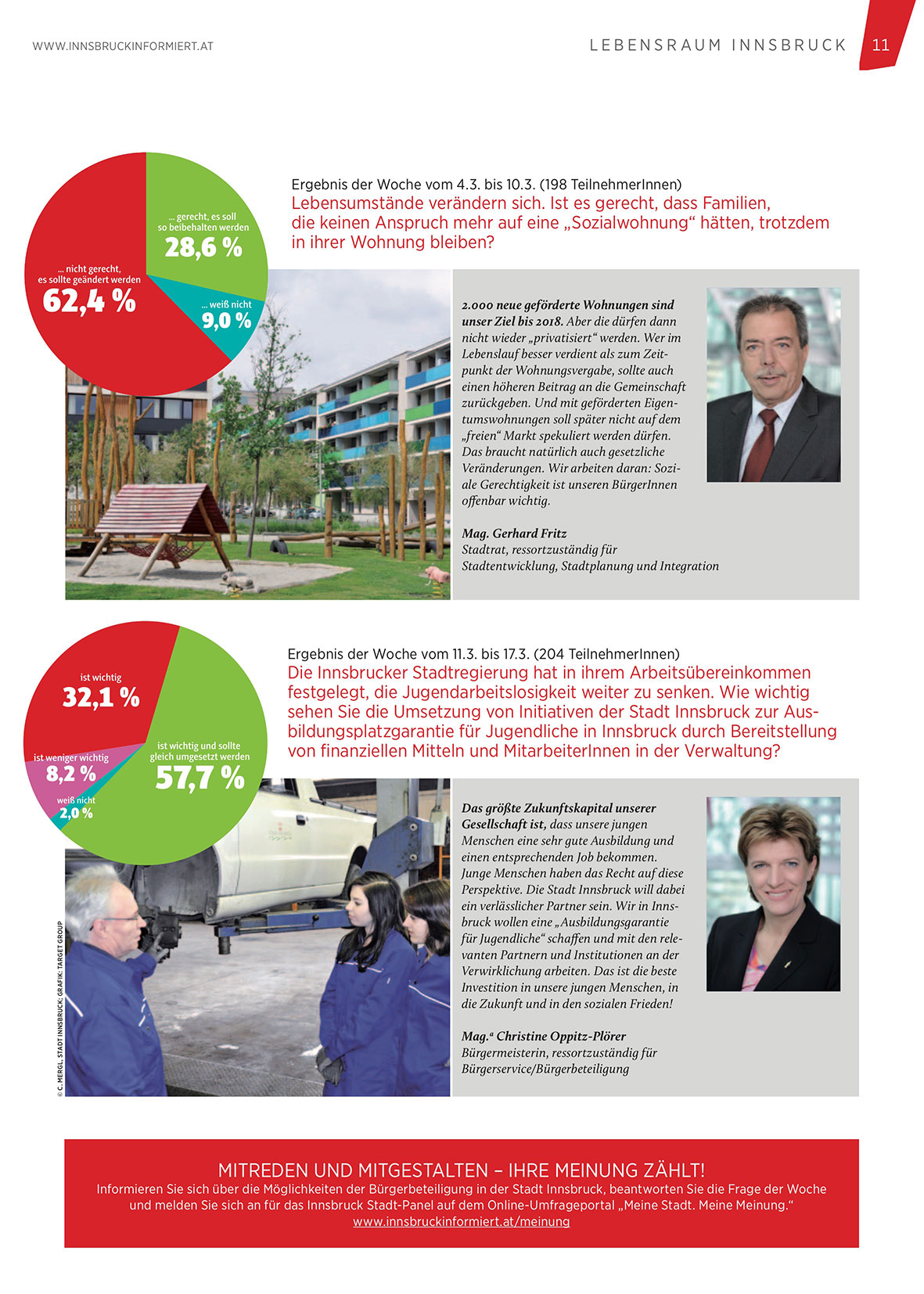 und melden Sie sich an für das Innsbruck Stadt-Panel auf dem Online-Umfrageportal „Meine Stadt. Meine Meinung.“
