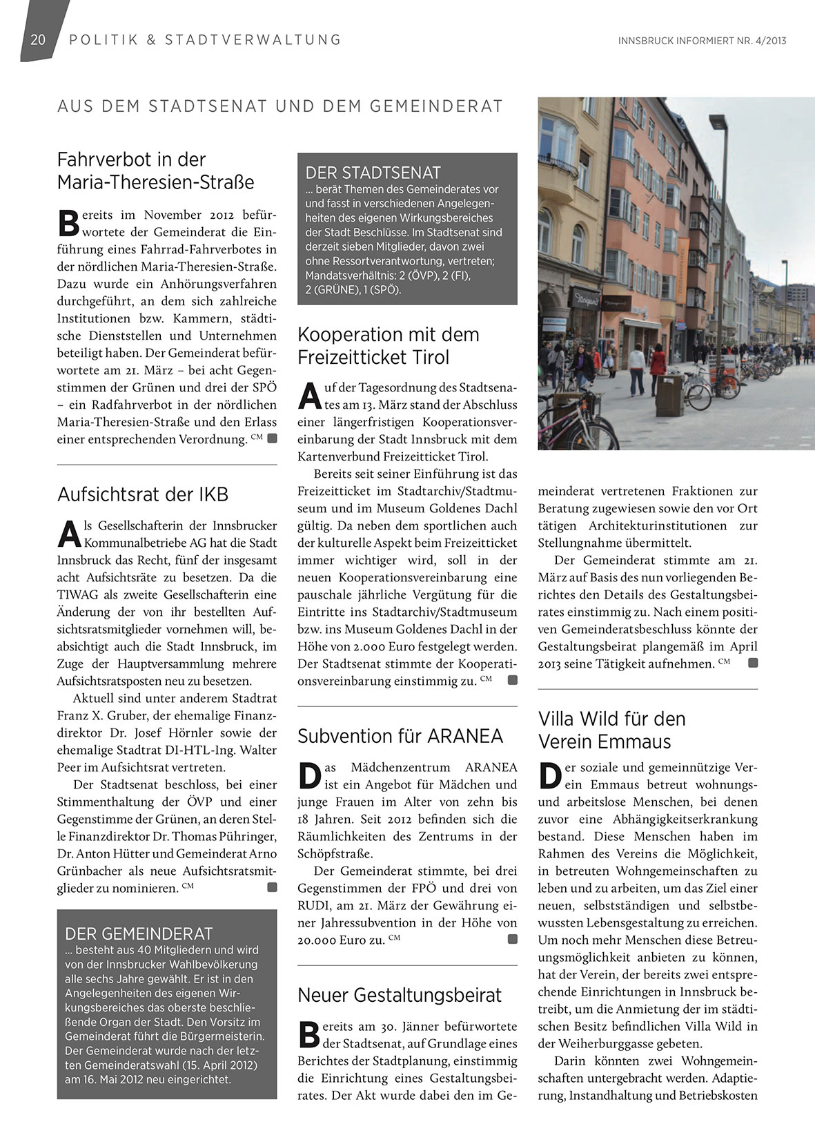 Änderung der von ihr bestellten Aufsichtsratsmitglieder vornehmen will, beabsichtigt auch die Stadt Innsbruck, im