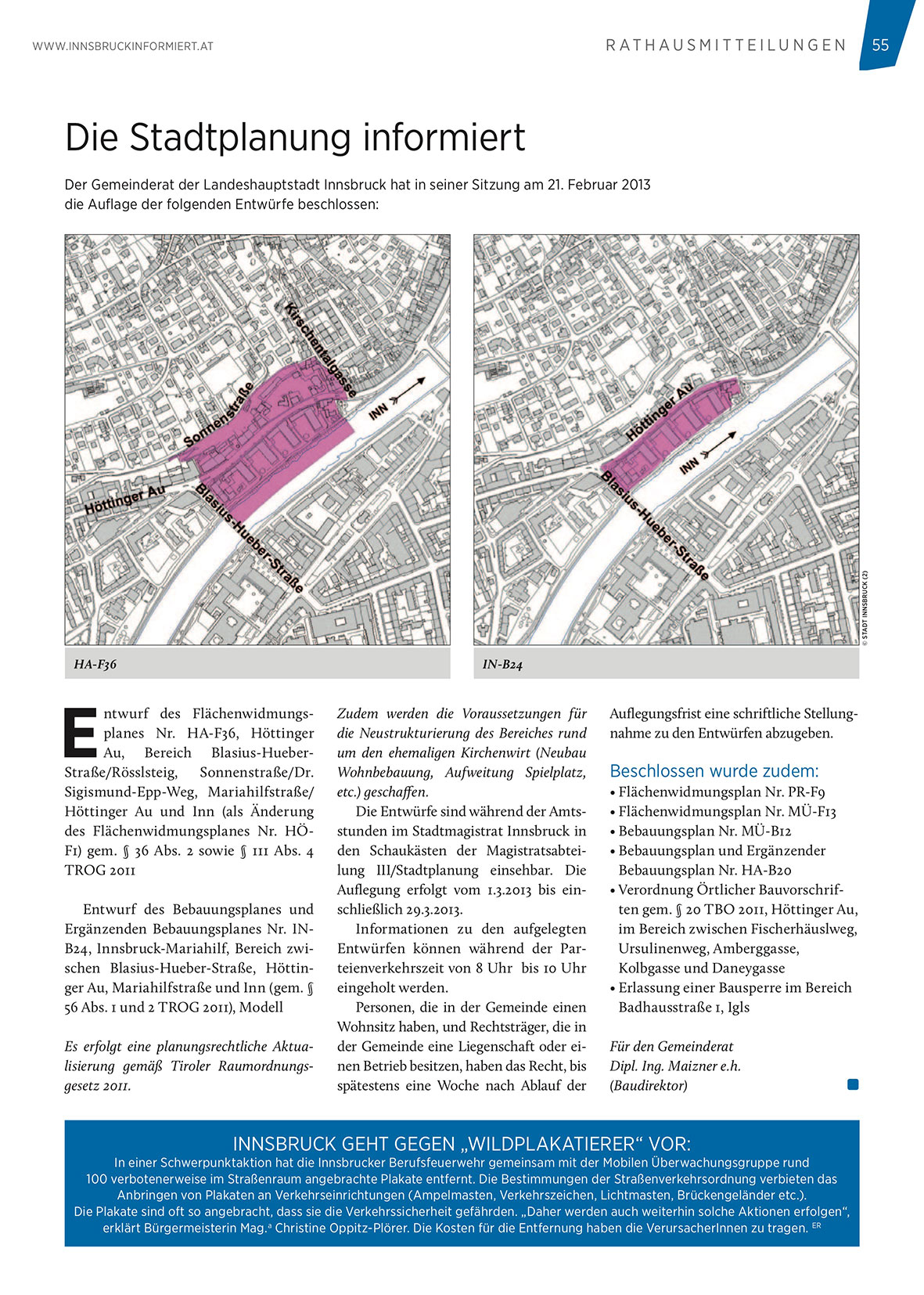 Die Entwürfe sind während der Amtsstunden im Stadtmagistrat Innsbruck in