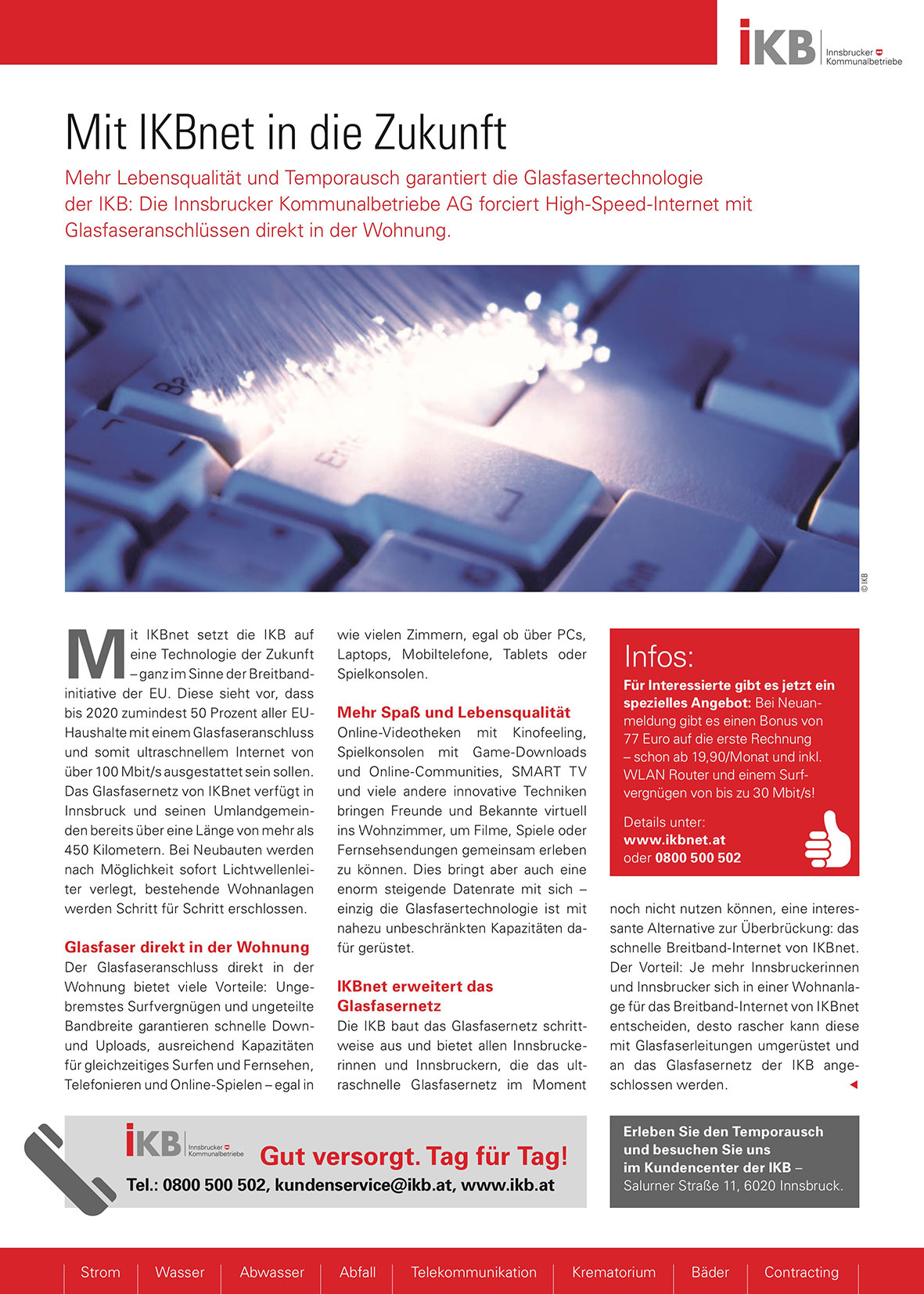 der IKB: Die Innsbrucker Kommunalbetriebe AG forciert High-Speed-Internet mit