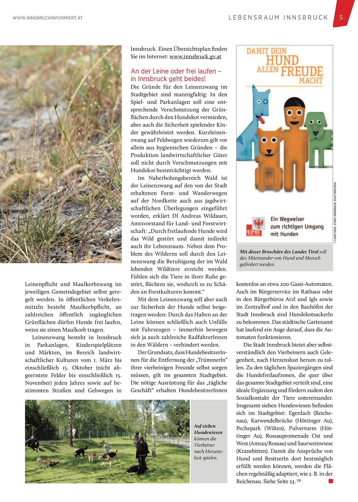 Die Stadt Innsbruck bietet aber selbstverständlich den Vierbeinern auch Gelegenheit, nach Herzenslust herum zu tollen. Zu den täglichen Spaziergängen sind