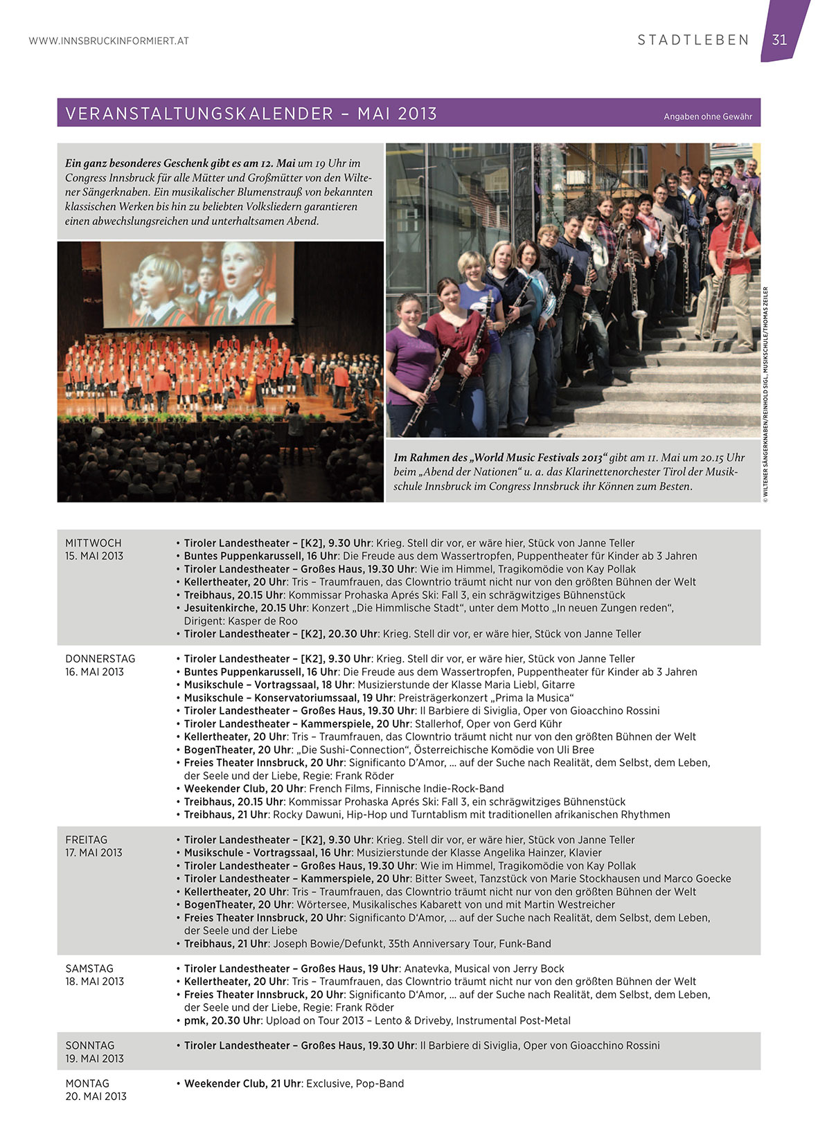 Congress Innsbruck für alle Mütter und Großmütter von den Wiltener Sängerknaben. Ein musikalischer Blumenstrauß von bekannten