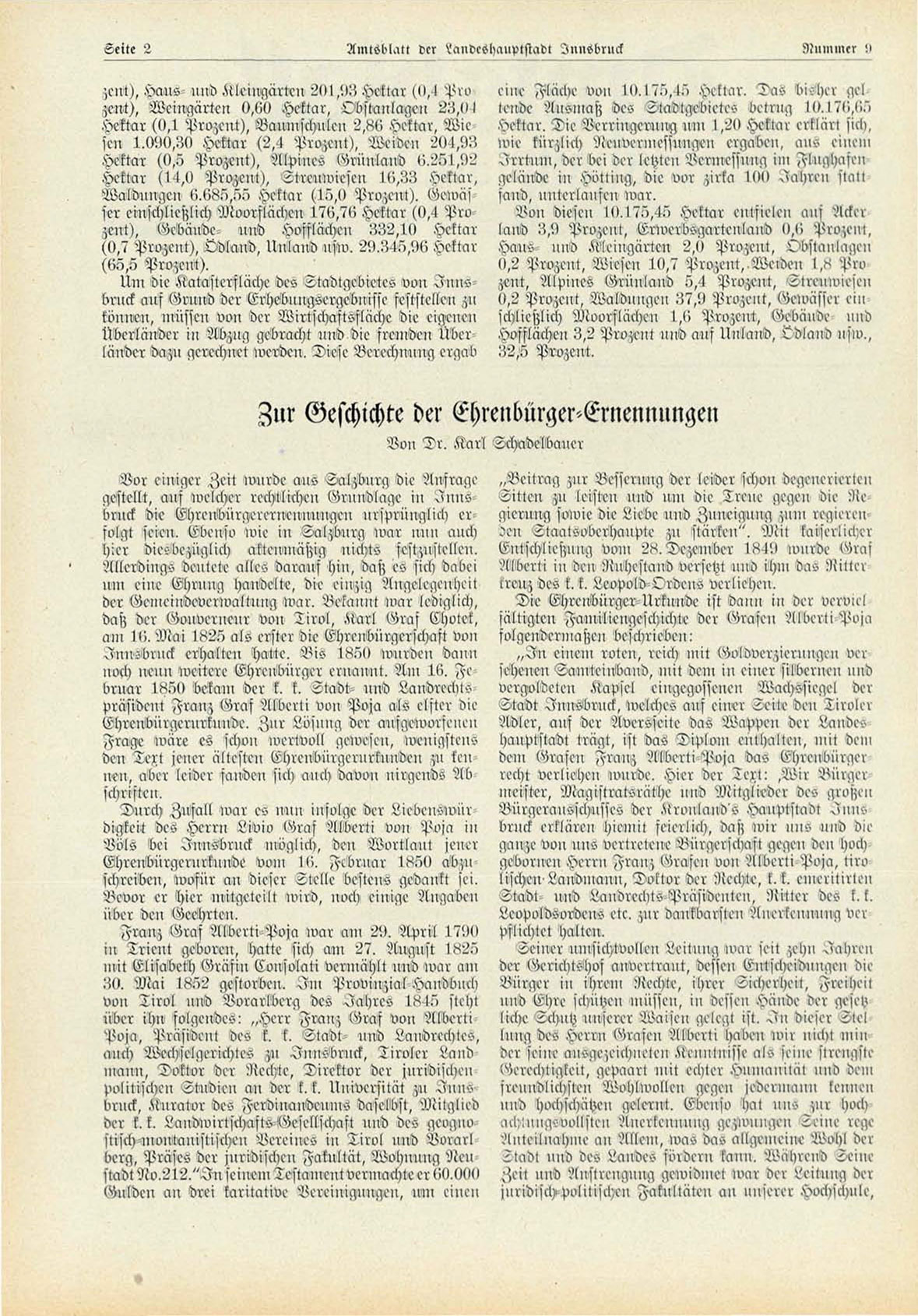 gestellt, anf welcher rechtlichen Grundlage in I n n s bruck die Ehrenbürger er ncnnnngcn ursprünglich erfolgt seien. Vben"so loie in Salzburg war nnn auch