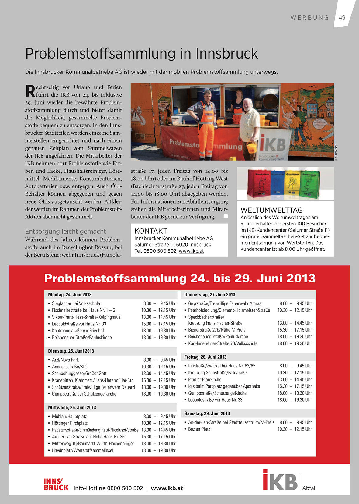 Die Innsbrucker Kommunalbetriebe AG ist wieder mit der mobilen Problemstoffsammlung unterwegs.