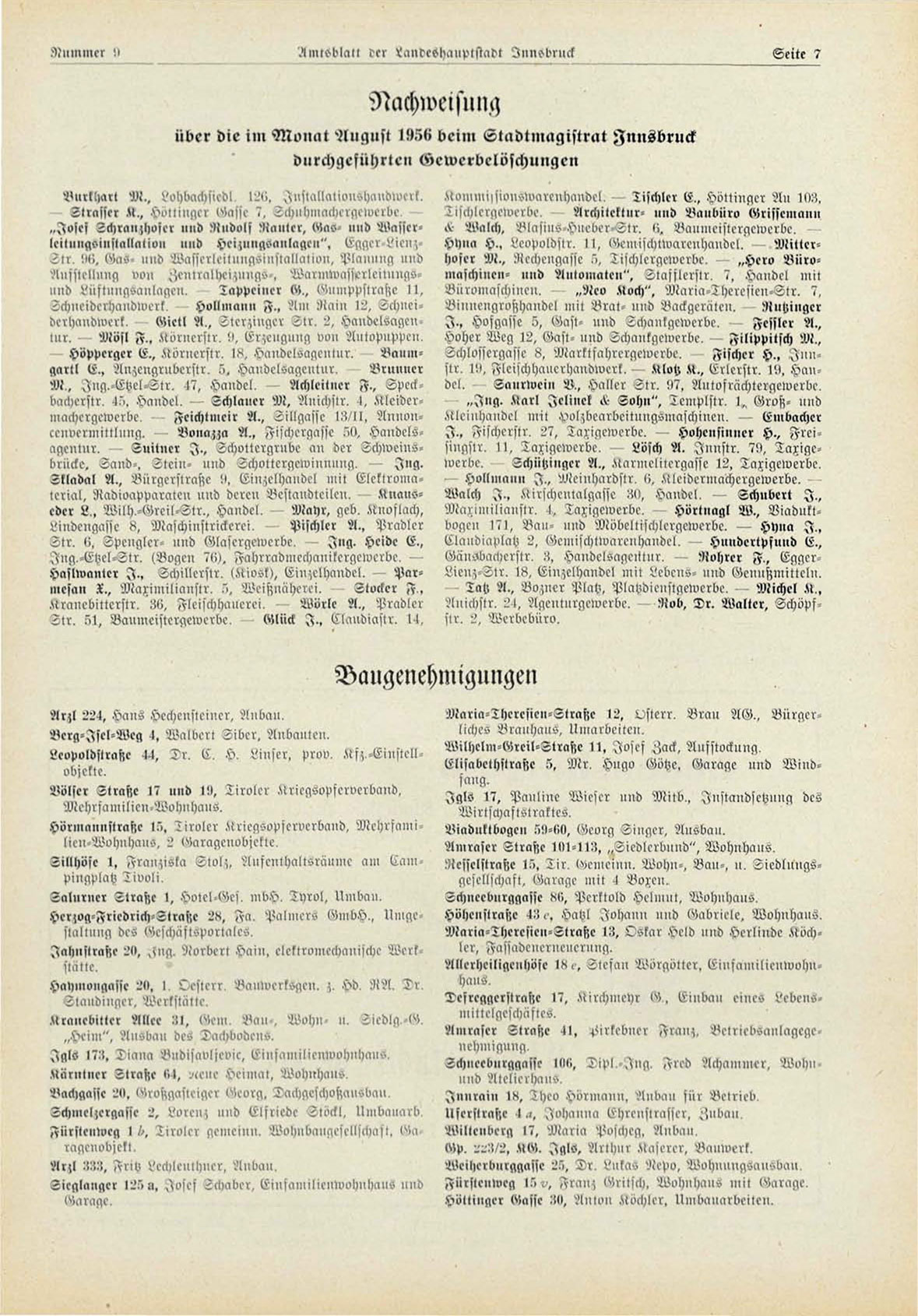 Achleituer F., Speckdacherstr, -l",. Handel, — Schlauer M , Anichstr. 4, Klcidcr^cichtmcir A., Zillqassc l:^/II, Annon^ Vouazza A., ^yischcrgasse 5l>, Handcls- Suitner I . , Schottergrubc an der Schwemöbrücke, Sand-, 2 t c i n - und Schottcrqcwinnuna,. — J u g .