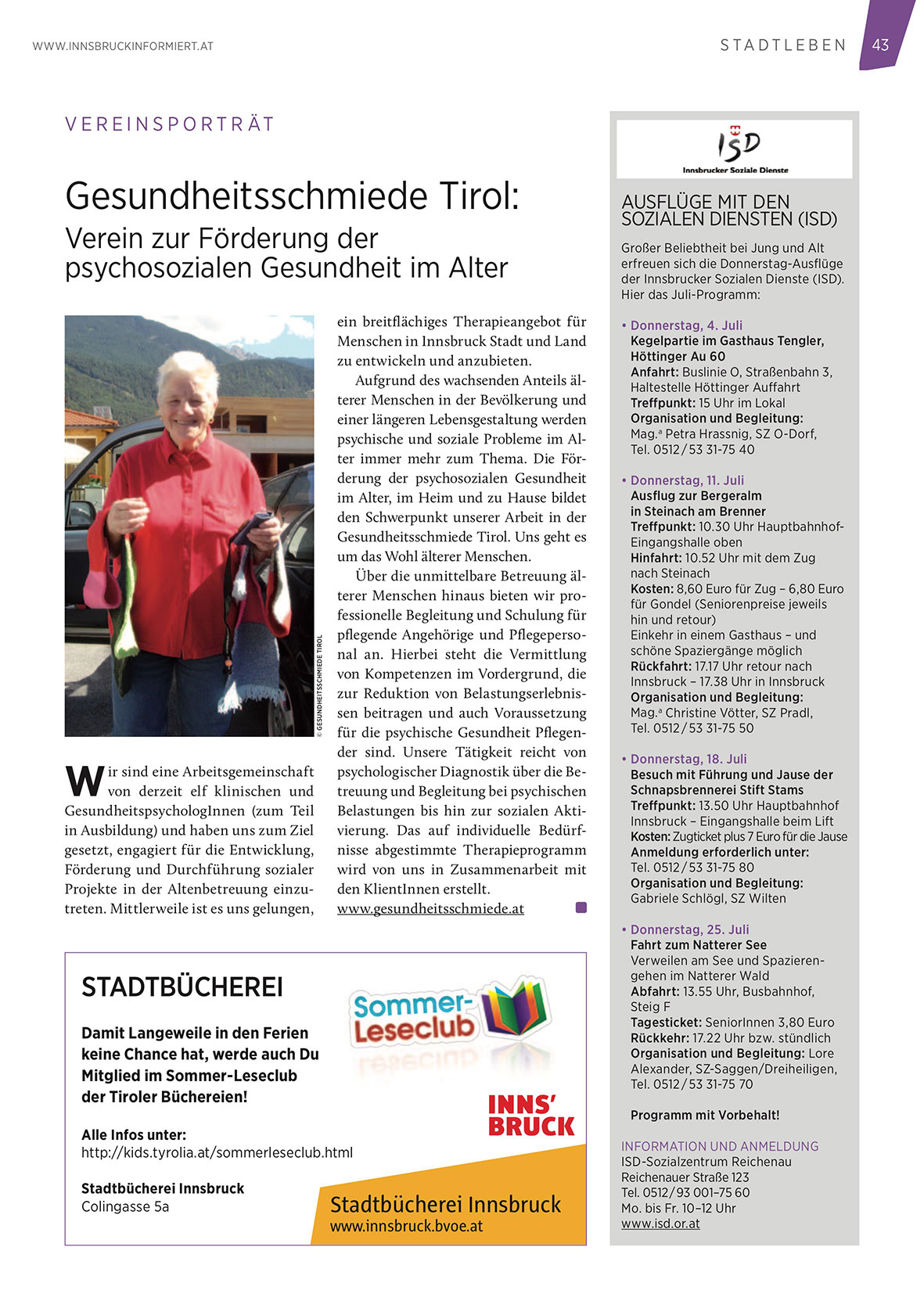 psychische und soziale Probleme im Alter immer mehr zum Thema. Die Förderung der psychosozialen Gesundheit