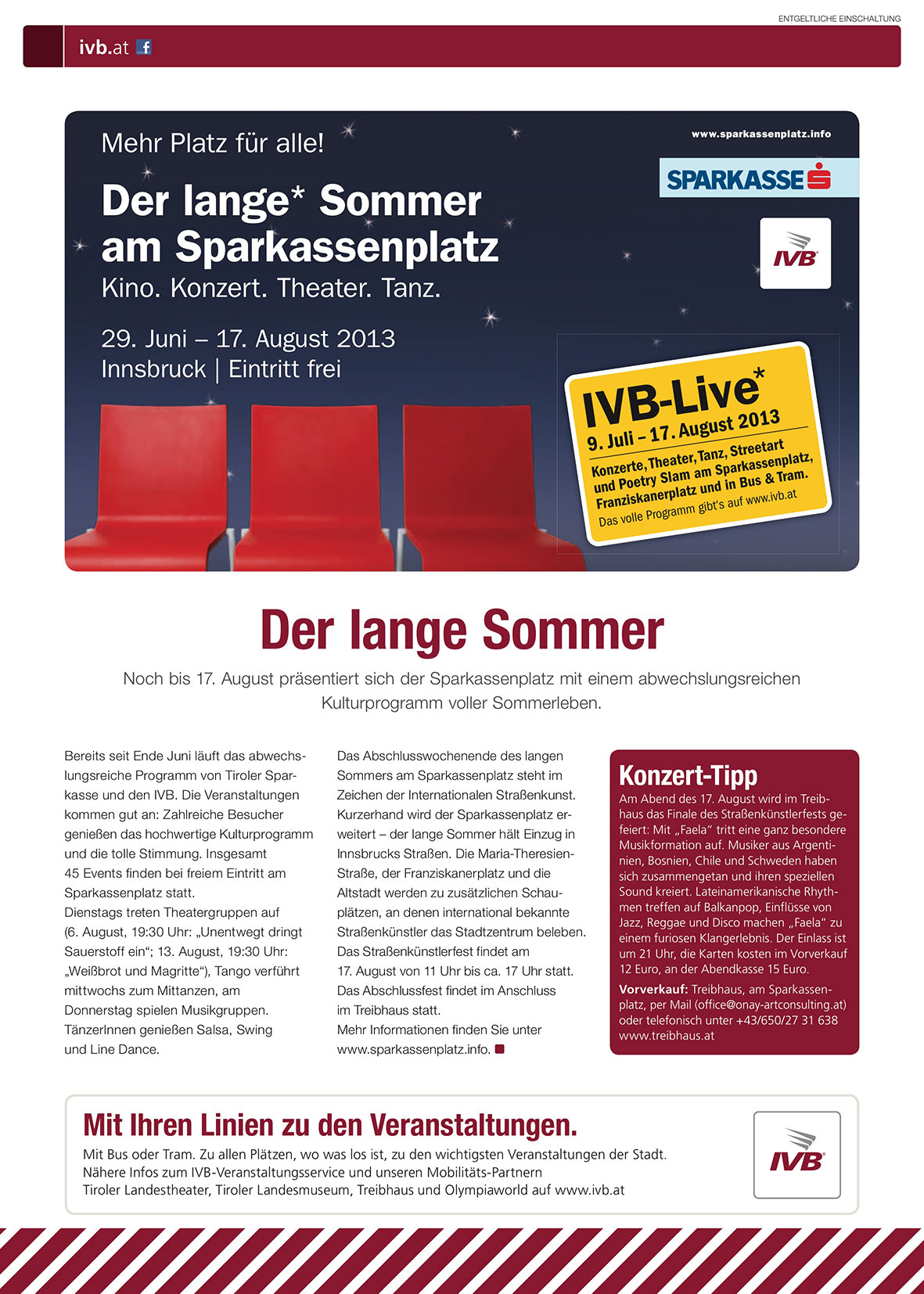 Bereits seit Ende Juni läuft das abwechslungsreiche Programm von Tiroler Sparkasse und den IVB. Die Veranstaltungen