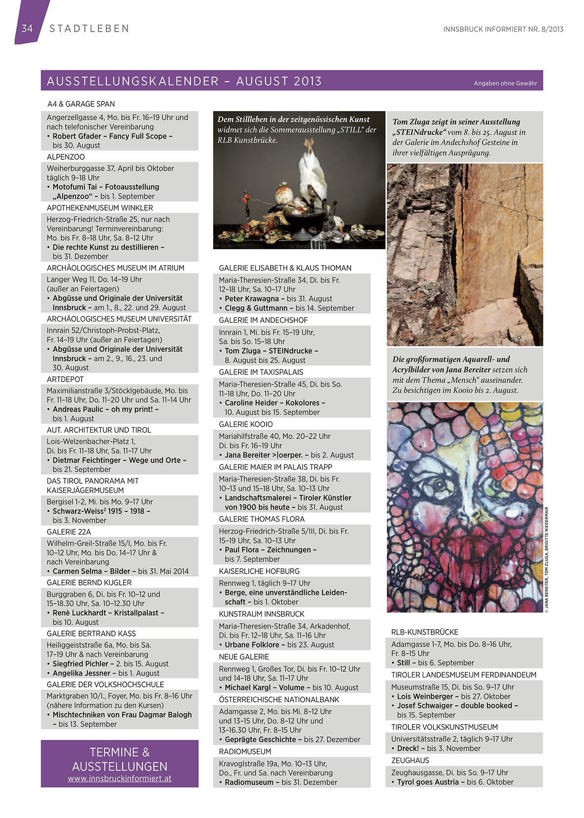 Aus s tellu n g s k alen d er – Au g us t 2013