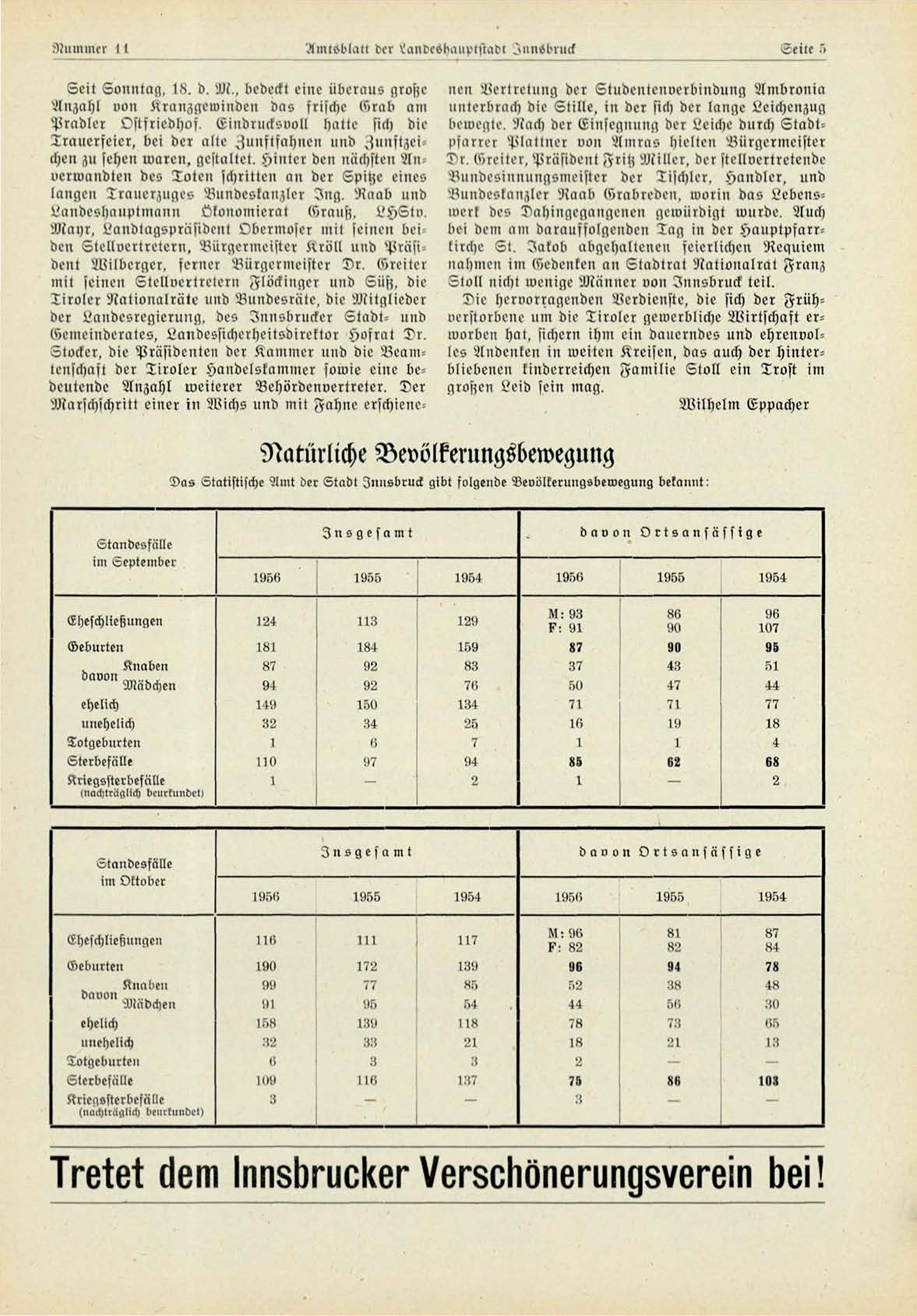 der Landesregierung, des Inusbrucker Stadt- lind