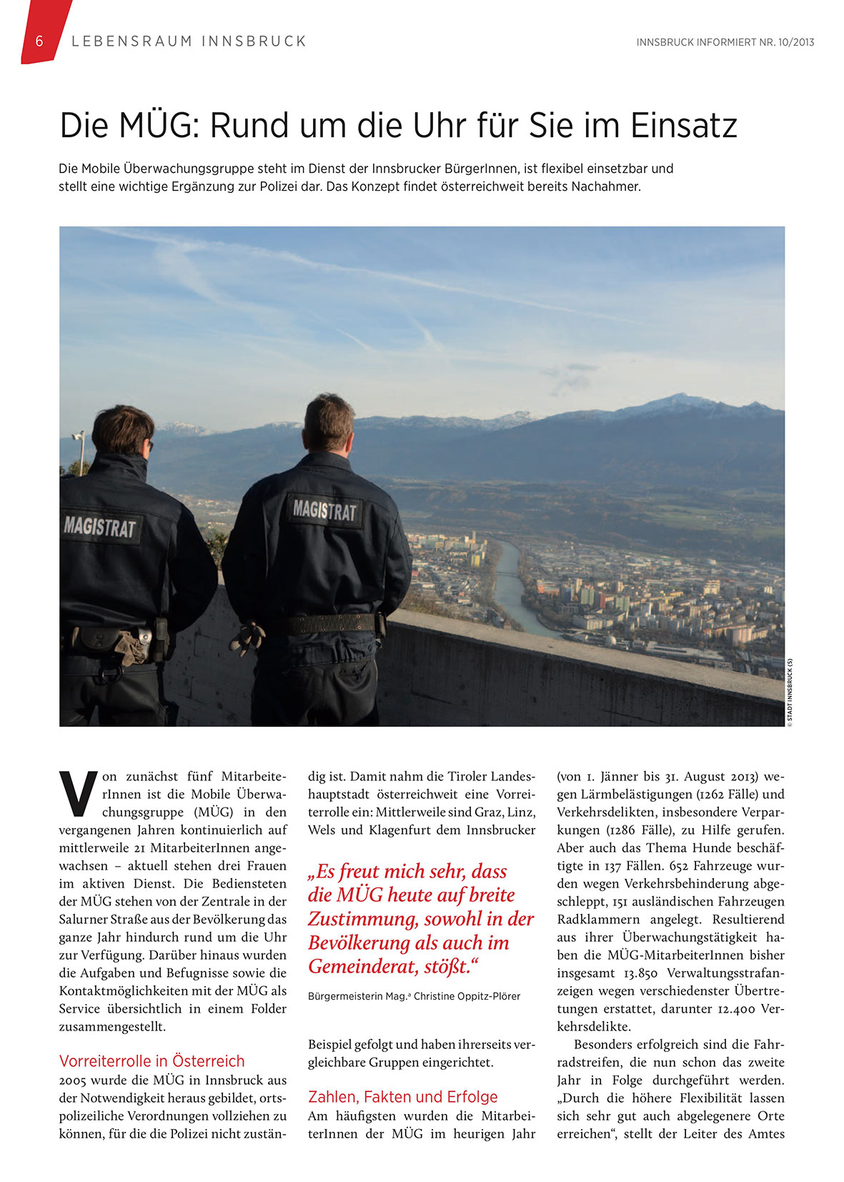 Die Mobile Überwachungsgruppe steht im Dienst der Innsbrucker BürgerInnen, ist flexibel einsetzbar und
