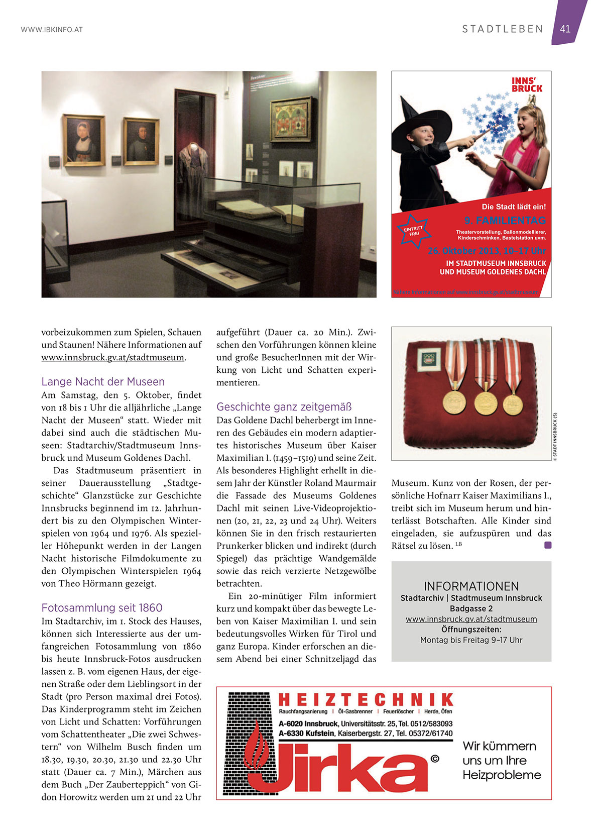 Nähere Informationen auf www.innsbruck.gv.at/stadtmuseum