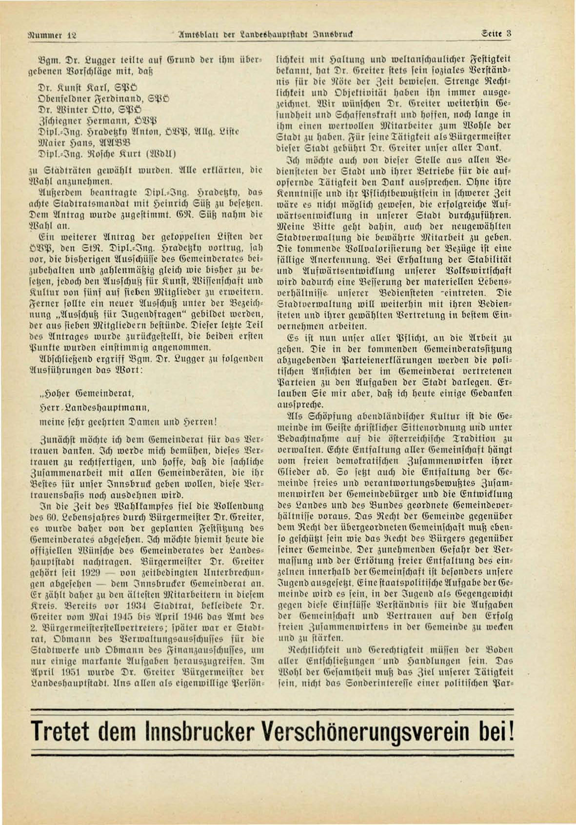 offiziellen wünsche des Gemeinderates der Landeshauptstadt nachtragen. Bürgermeister Dr. Grcitcr