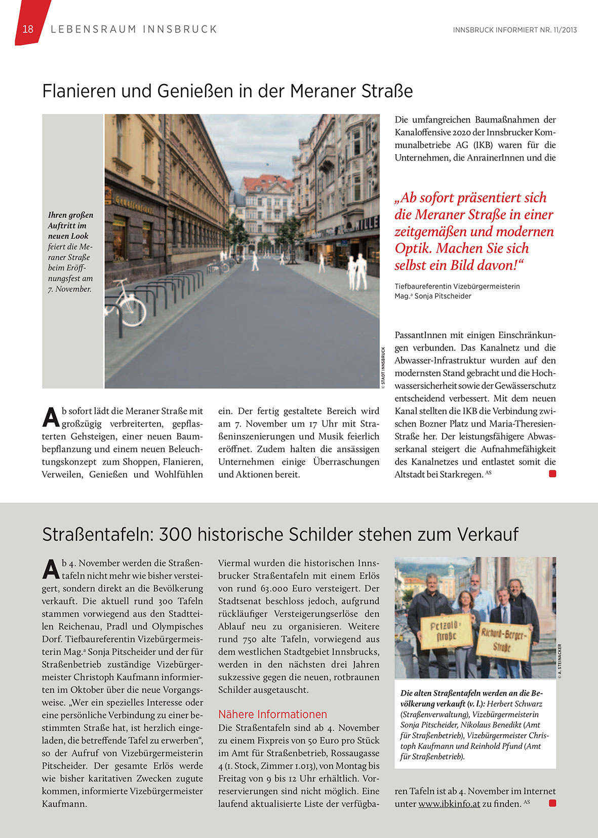 Kanal stellten die IKB die Verbindung zwischen Bozner Platz und Maria-TheresienStraße her. Der leistungsfähigere Abwasserkanal steigert die Aufnahmefähigkeit