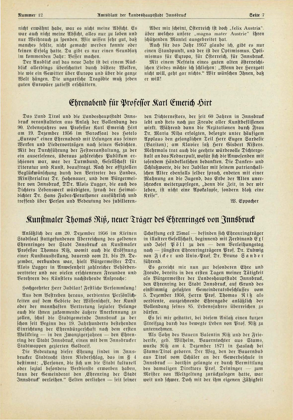 Die Bedeutung dieser Ehrung findet im I n n s brucker Stadtrecht ilnen Riedelschlag, das im tz l