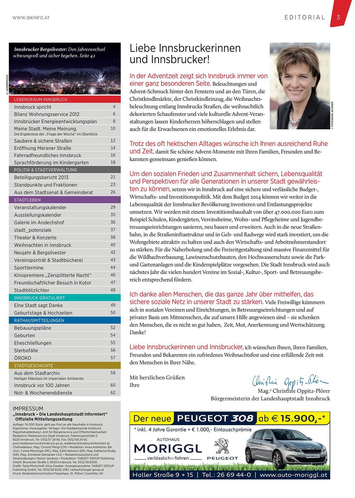 auflage: 74.000 stück; geht per Post an alle Haushalte in innsbruck