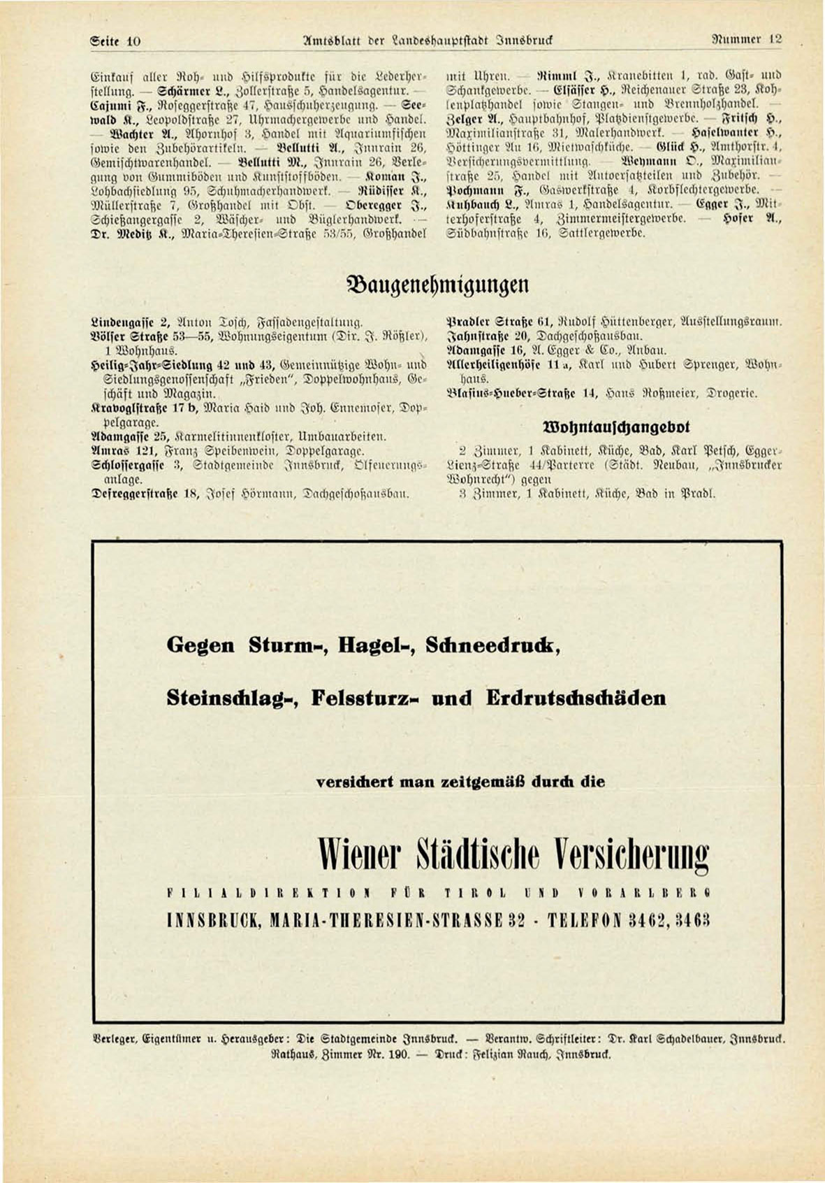 Verleger, Eiqentllnier u. Herausgeber : Die Stadtgememde Innsbruck. — Pcrnntw. Schriftleiter " Tr, Karl Hchndl-Ilnnicr,