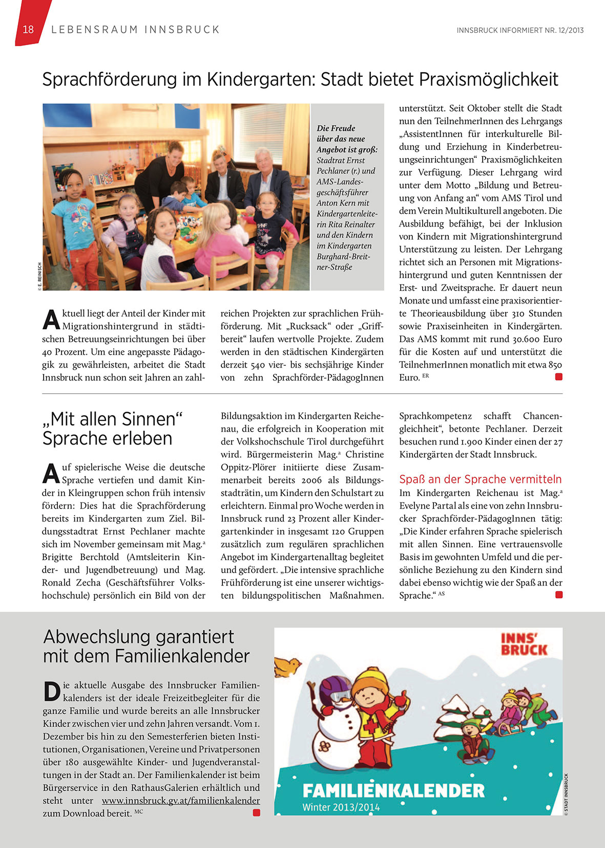 Innsbruck rund 23 Prozent aller Kindergartenkinder in insgesamt 120 Gruppen