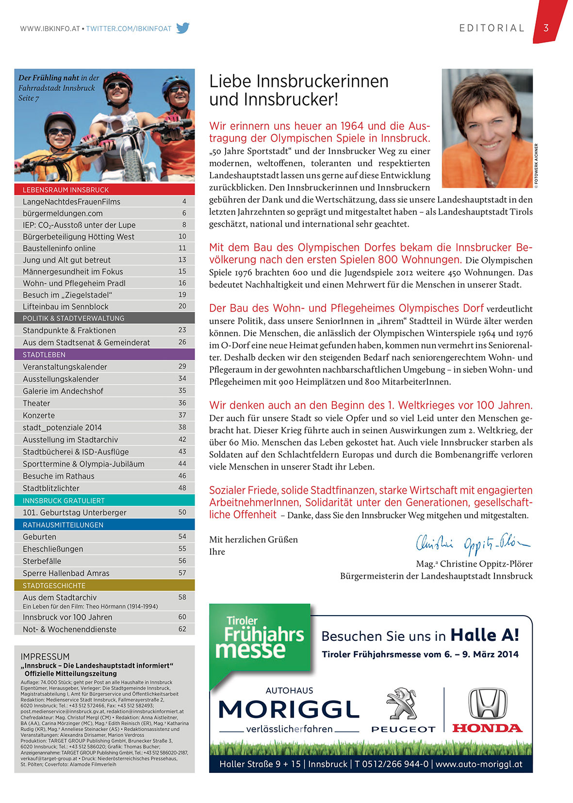 eigentümer, herausgeber, Verleger: die stadtgemeinde innsbruck,