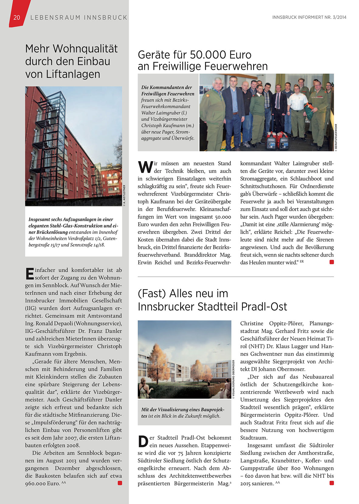 Kosten übernahm dabei die Stadt Innsbruck, ein Drittel finanzierte der Bezirksfeuerwehrverband. Branddirektor Mag.