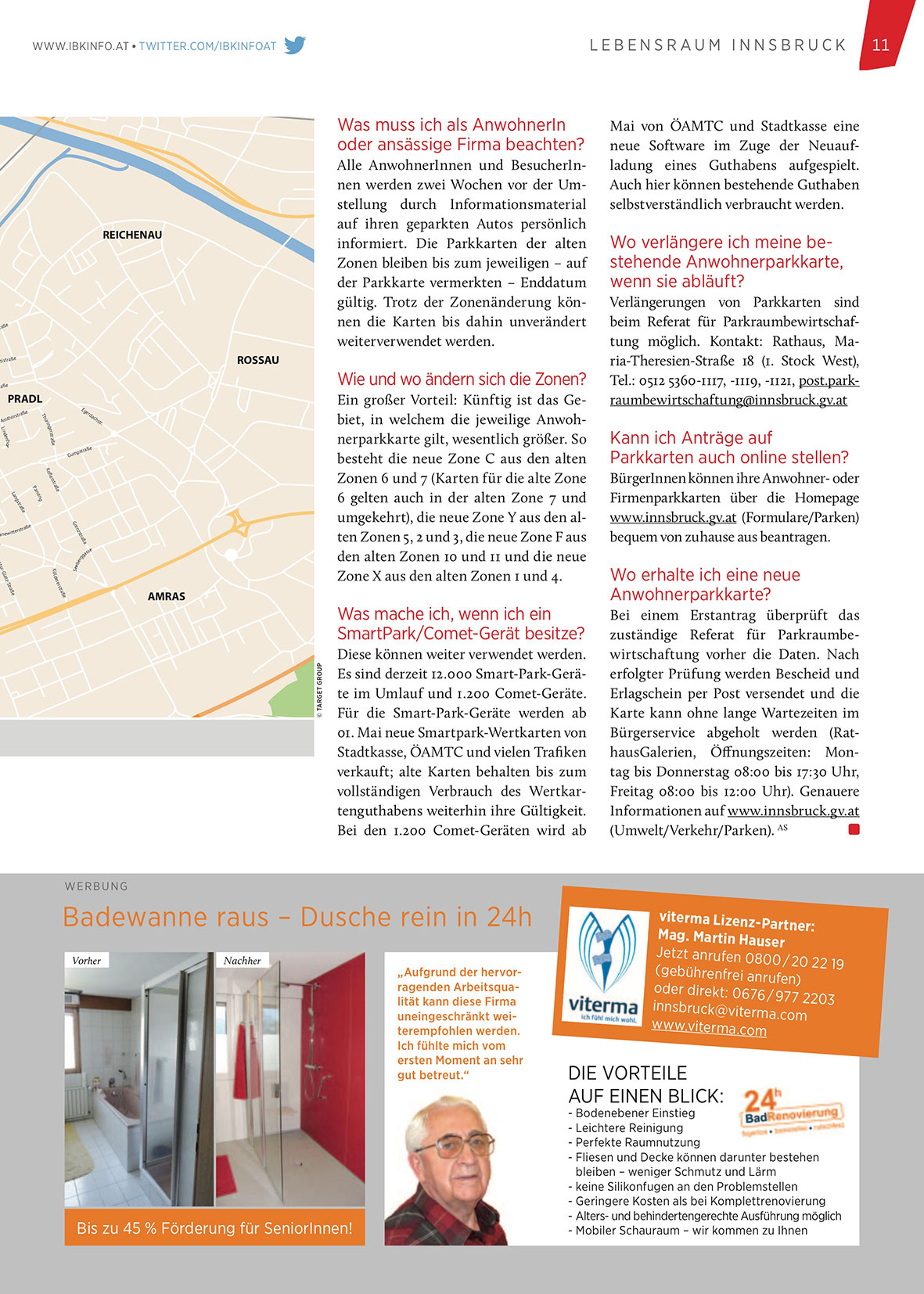 beim Referat für Parkraumbewirtschaftung möglich. Kontakt: Rathaus, Maria-Theresien-Straße 18 (1. Stock West),