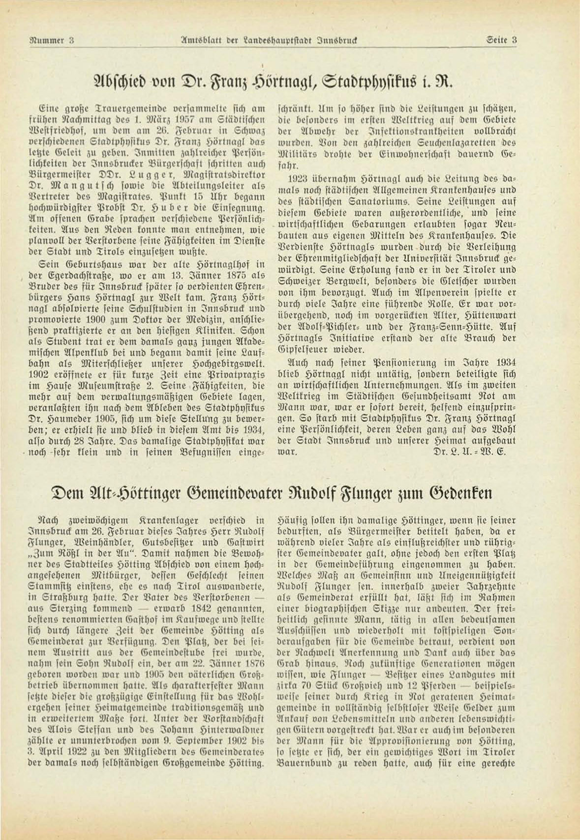 verschiedenen Stadlphysitus Dr. Franz Hörtnagl das