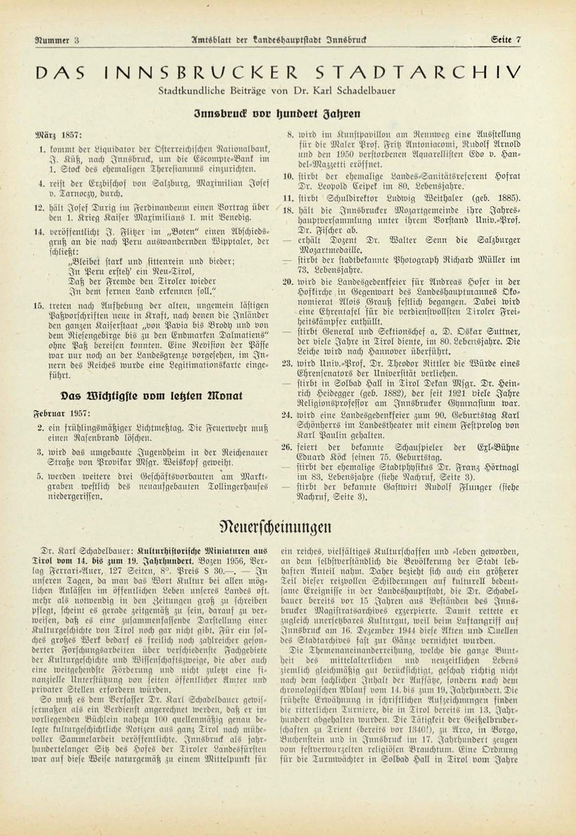 voller Sainmelarbeil veröffentlichte. Innsbruck als jähr