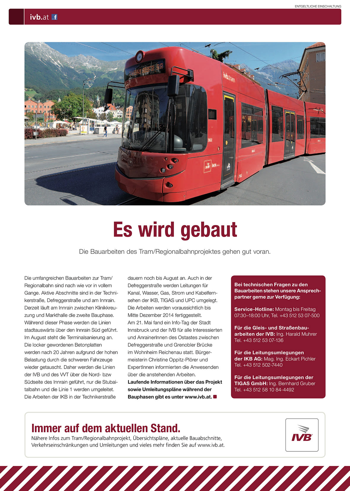 Verkehrseinschränkungen und Umleitungen und vieles mehr finden Sie auf www.ivb.at.