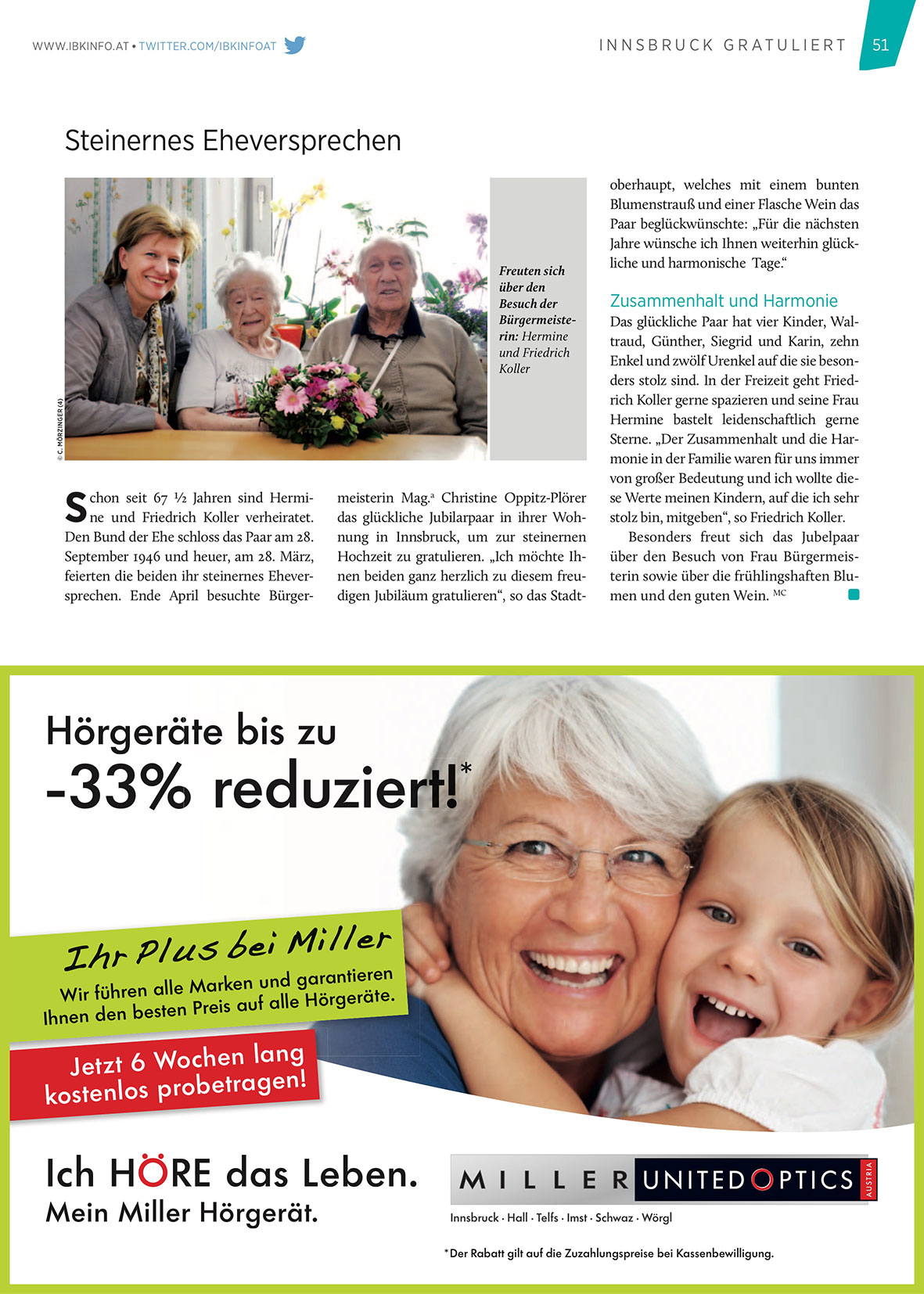 das glückliche Jubilarpaar in ihrer Wohnung in Innsbruck, um zur steinernen