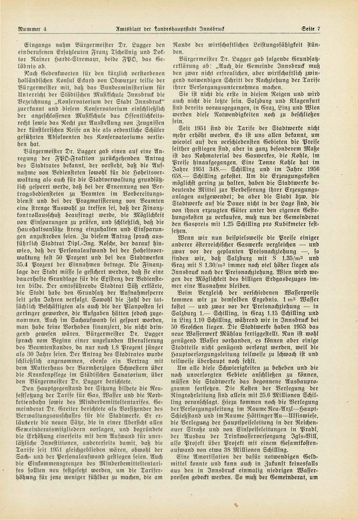 Bürgermeister Dr. lugger gab folgende Grundsatzerüärung ab! ,.Auch die Gemeinde Innsbruck muß