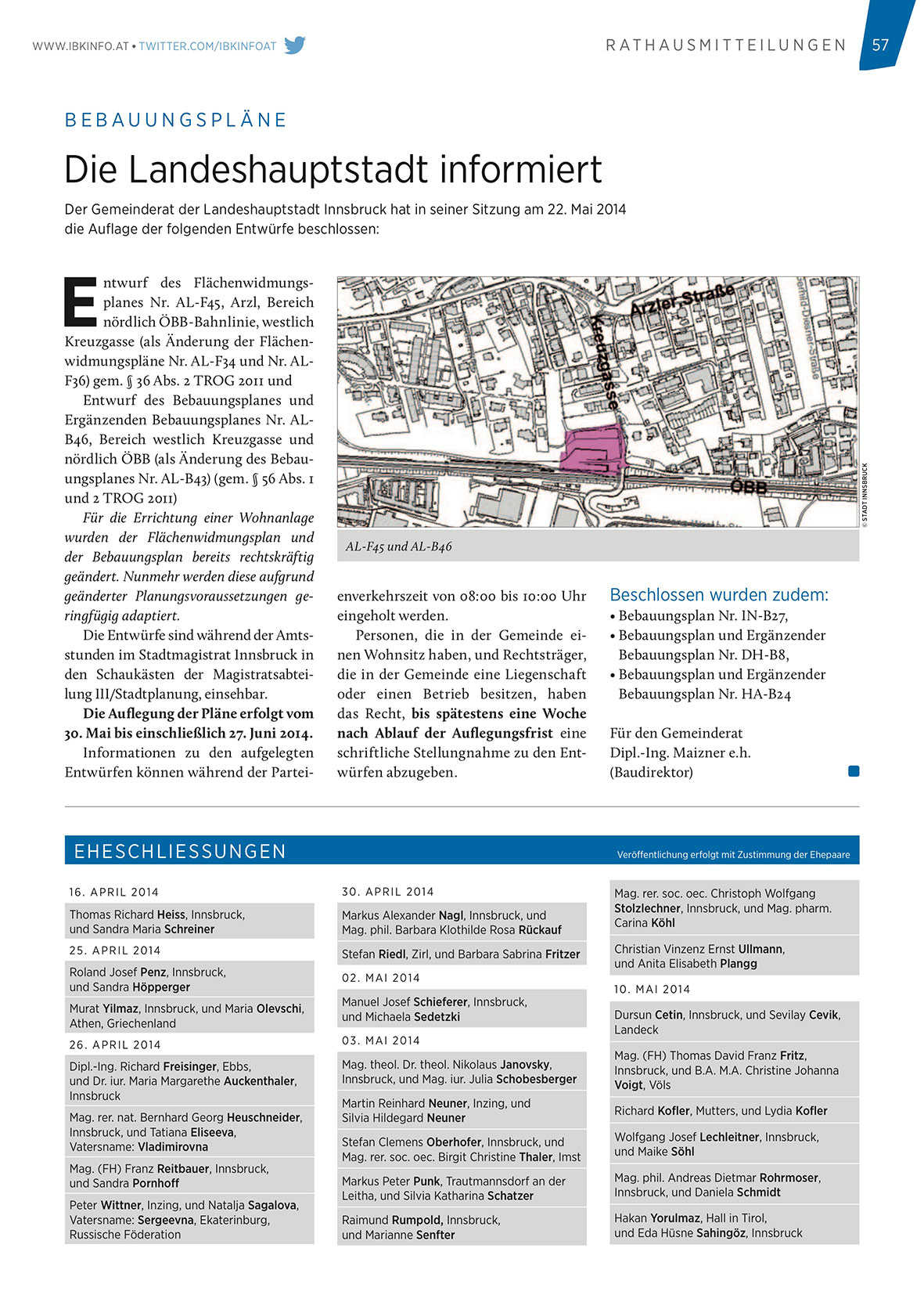 Die Entwürfe sind während der Amtsstunden im Stadtmagistrat Innsbruck in