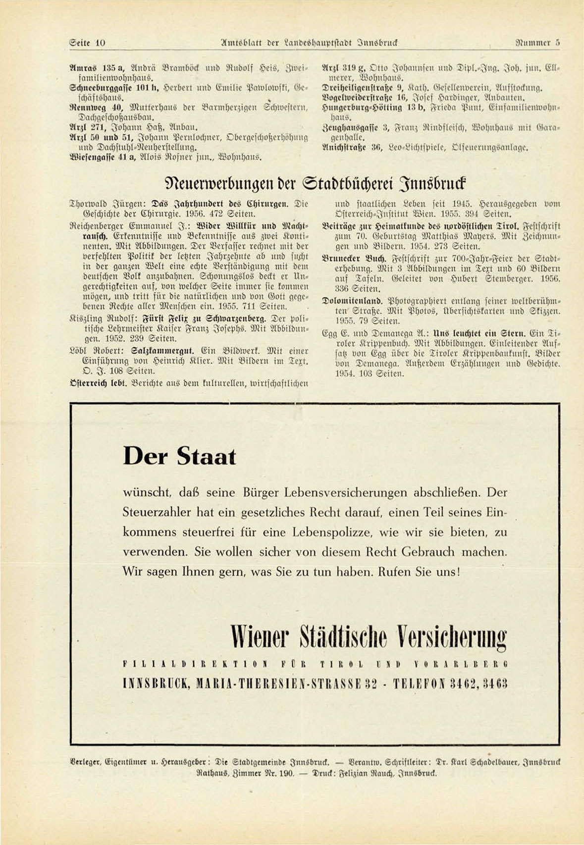 Perlener, Eigeiltiiiner ».Herausgeber! Die Stadtgemeinde Innsbrucl. — Arrant»,". Schriflleilcr: Tr, Karl Lch