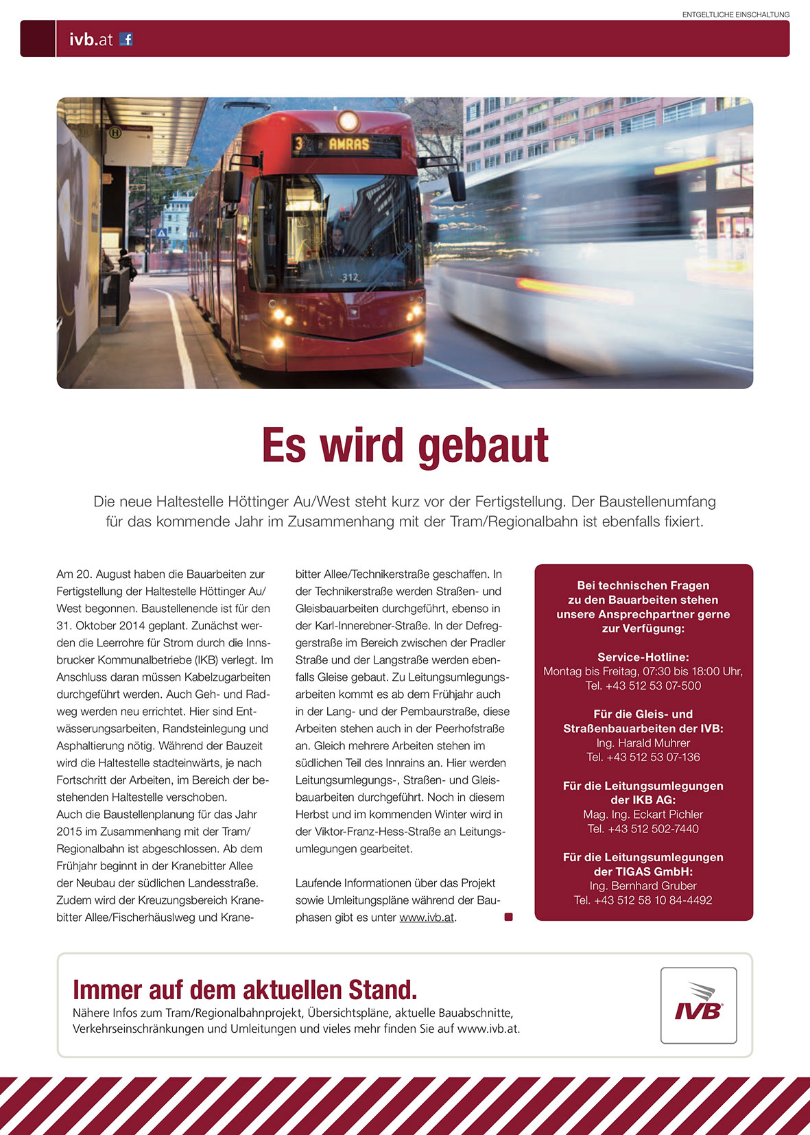 Verkehrseinschränkungen und Umleitungen und vieles mehr finden Sie auf www.ivb.at.